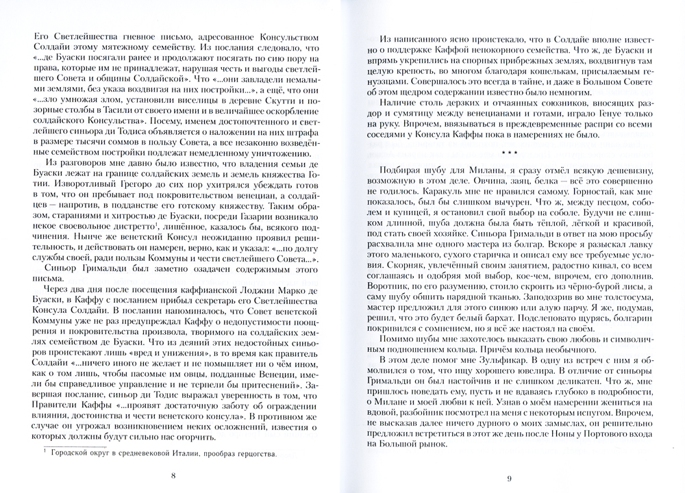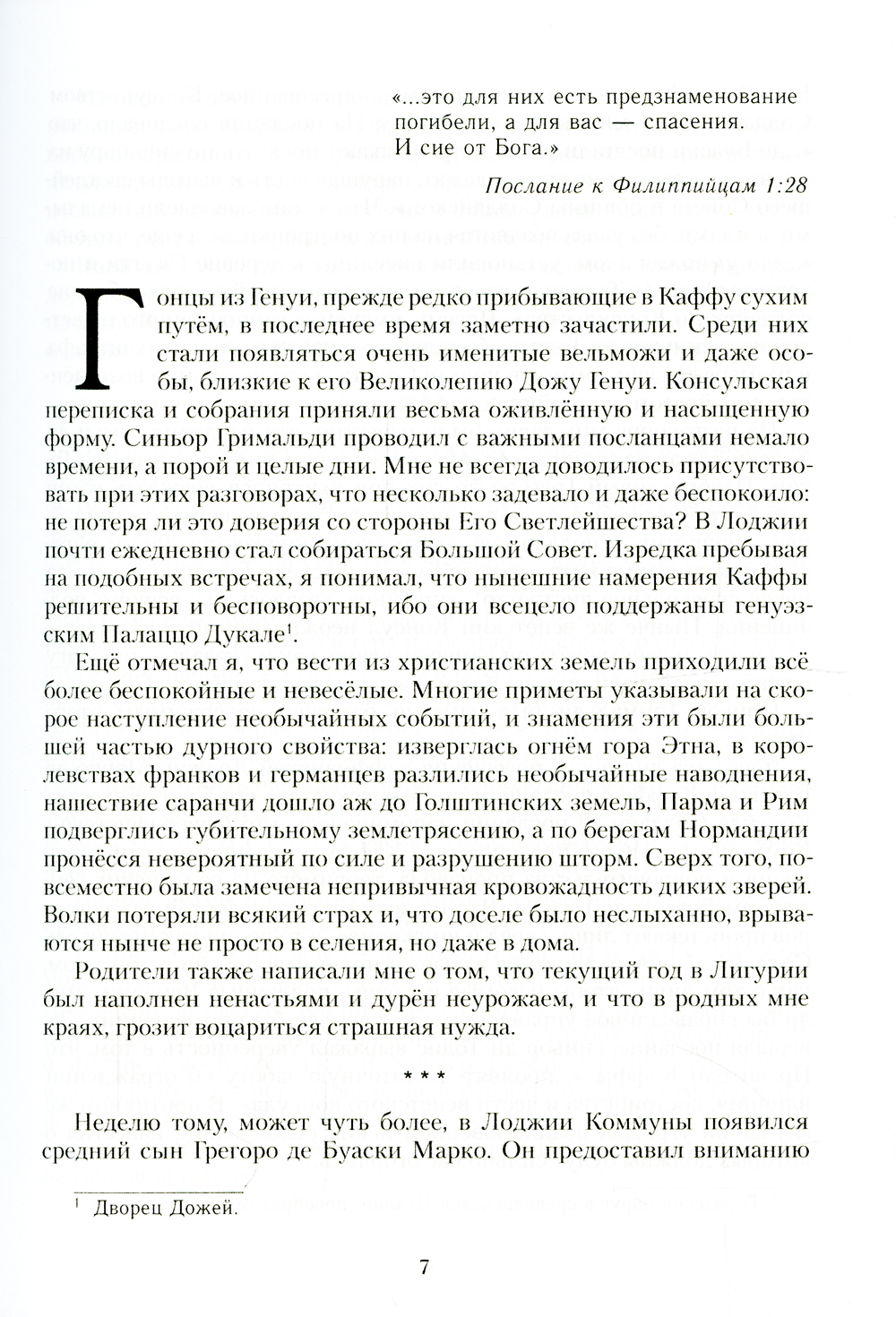 Приключенческий роман современного российского писателя Олега Морянина, действие которого происходит в средневековой Каффе (старое название Феодосии). Отпрыск благородного, но обедневшего рода, спасаясь от разного рода неприятностей, покидает родную Геную и отправляется на службу в газарийские колонии, где проходит через жизненные испытания: любовь, войну и мор, неожиданным образом влияя на обстоятельства и сам изменяясь под их бременем.