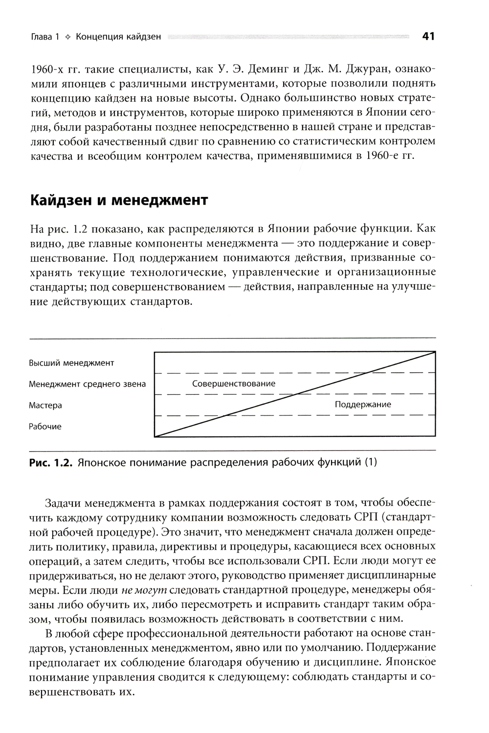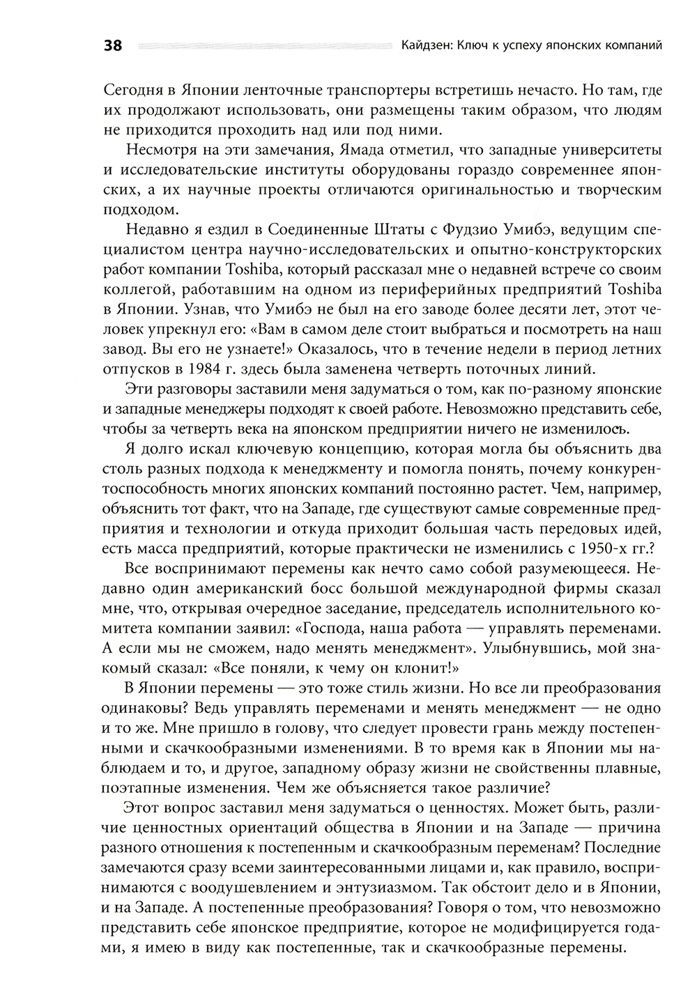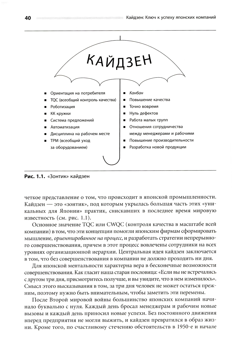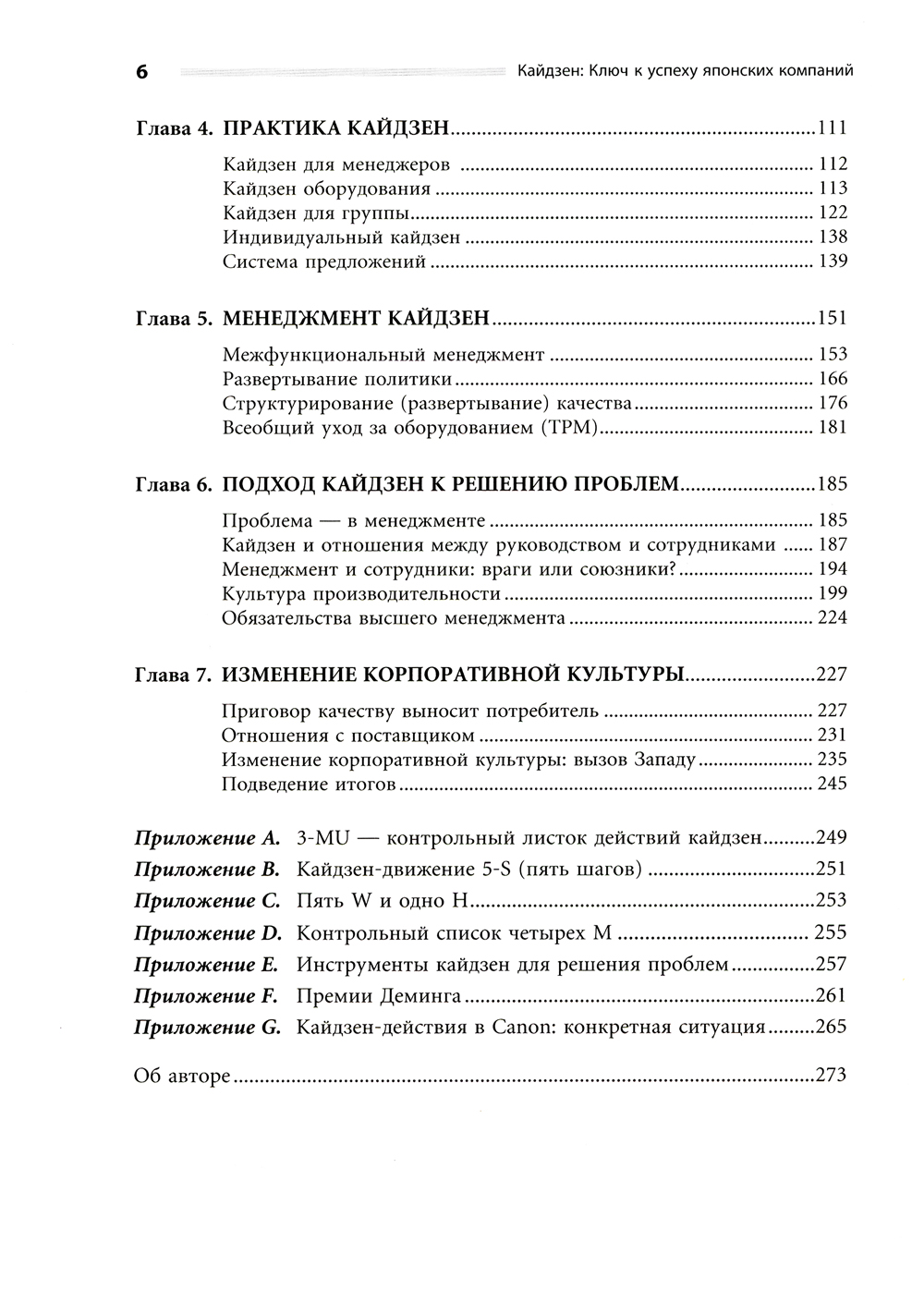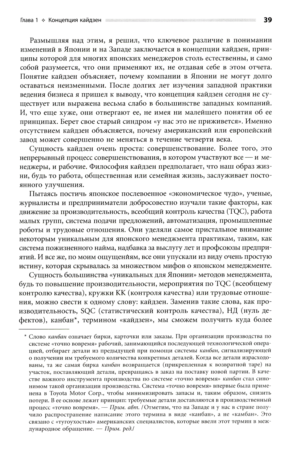 Кайдзен - это постоянное стремление к совершенству всего, что мы делаем, воплощенное в конкретные формы, методы, технологии и обращенное к людям. Хотя концепция кайдзен и родилась в Японии, она получила широкое распространение повсюду в мире и многократно убедительно доказала свою эффективность, причем не только в промышленности, но и в сфере услуг и в общественных организациях. Эта книга - первоисточник. Ее автор, М. Имаи, именно здесь впервые ввел термин «кайдзен» и призвал читателей за пределами Японии обратить внимание на огромные возможности менеджмента по-японски. Его призыв не остался незамеченным. Прежде всего эта книга адресована руководителям предприятий и организаций во всех областях человеческой деятельности, всех размеров и форм собственности. Она также представляет интерес для менеджеров всех уровней, сотрудников служб качества, управления персоналом, маркетинга и др. Студенты и аспиранты соответствующих специальностей найдут в книге много полезного. Не должны обойти ее вниманием консультанты в области общего менеджмента и менеджмента качества.| Издательство | Альпина Паблишер |