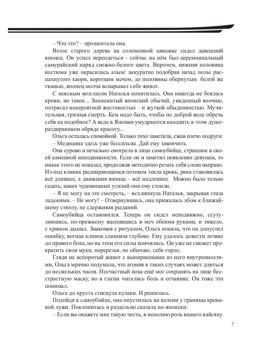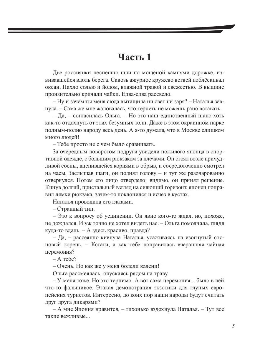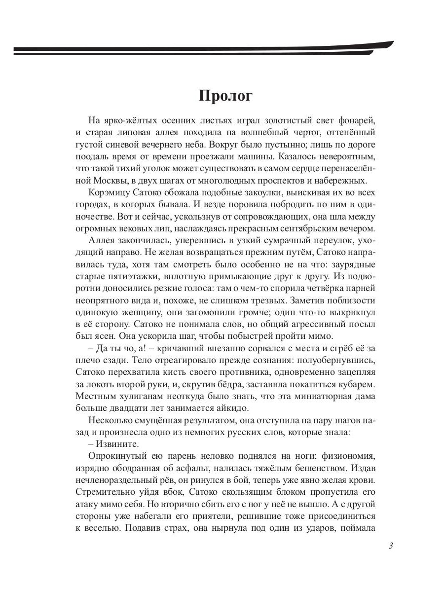 Что такое Бусидо, Путь самурая и воина, и есть ли для него место в нынешнем мире? Может ли смерть оказаться вершиной жизни? Какова цена человеческого достоинства? Ольга Селинова не новичок в боевых искусствах, но чтобы ответить на эти вопросы, ей придётся приехать в Японию - и войти в ряды тайной школы бойцов, живущих по древним самурайским законам. И не просто войти, а стать там своей, совершив практически невозможное для женщины-иностранки...