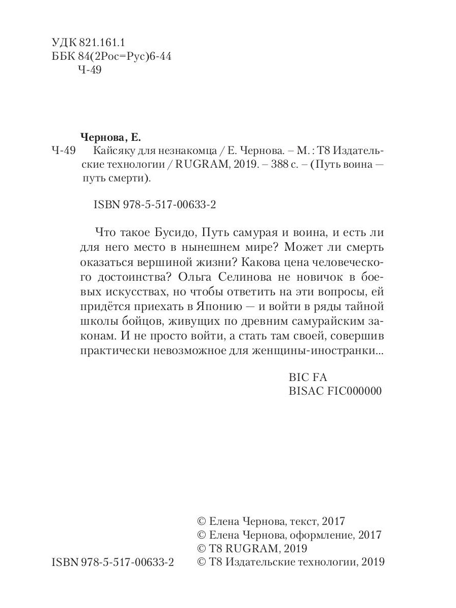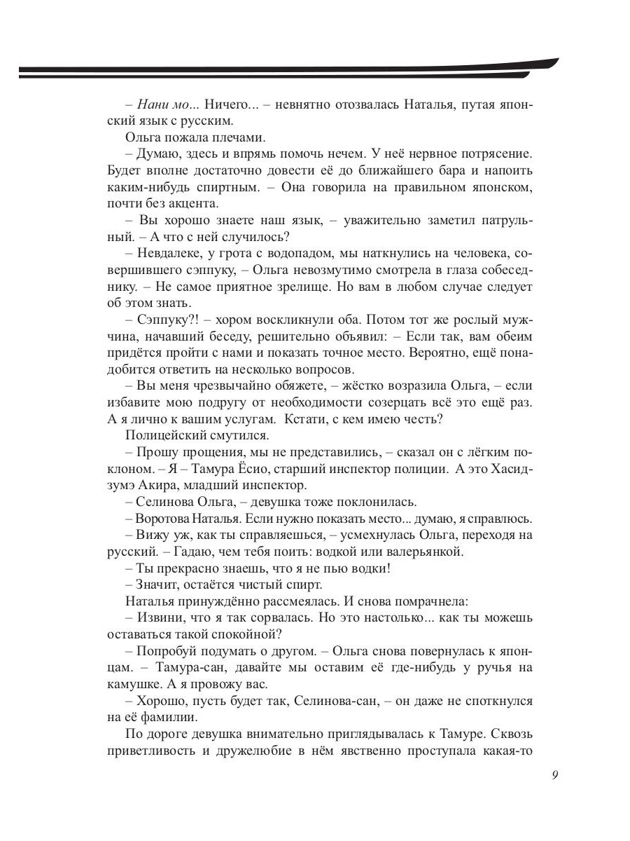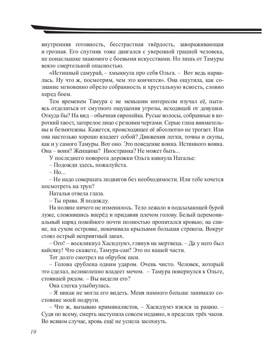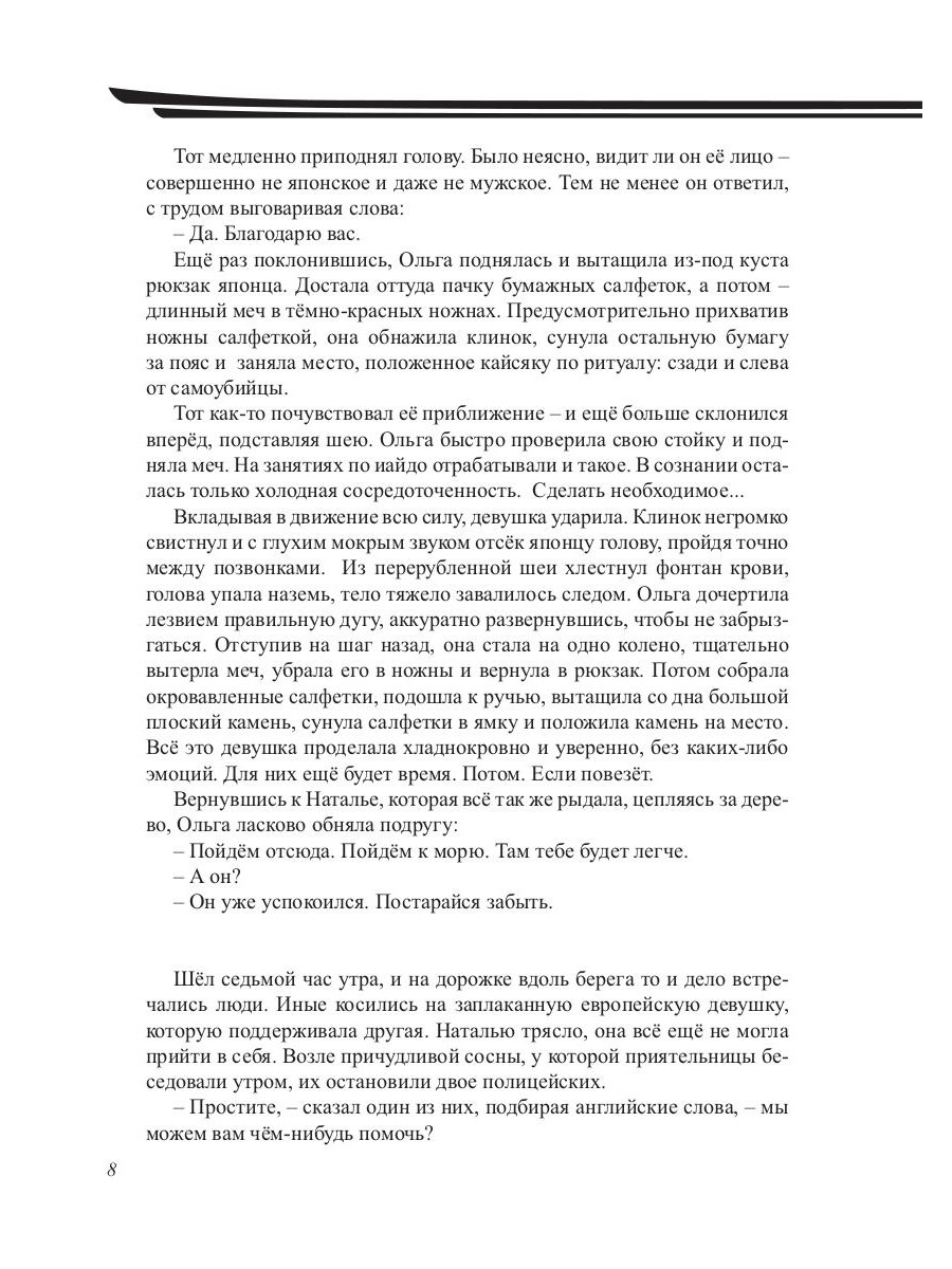 Что такое Бусидо, Путь самурая и воина, и есть ли для него место в нынешнем мире? Может ли смерть оказаться вершиной жизни? Какова цена человеческого достоинства? Ольга Селинова не новичок в боевых искусствах, но чтобы ответить на эти вопросы, ей придётся приехать в Японию - и войти в ряды тайной школы бойцов, живущих по древним самурайским законам. И не просто войти, а стать там своей, совершив практически невозможное для женщины-иностранки...