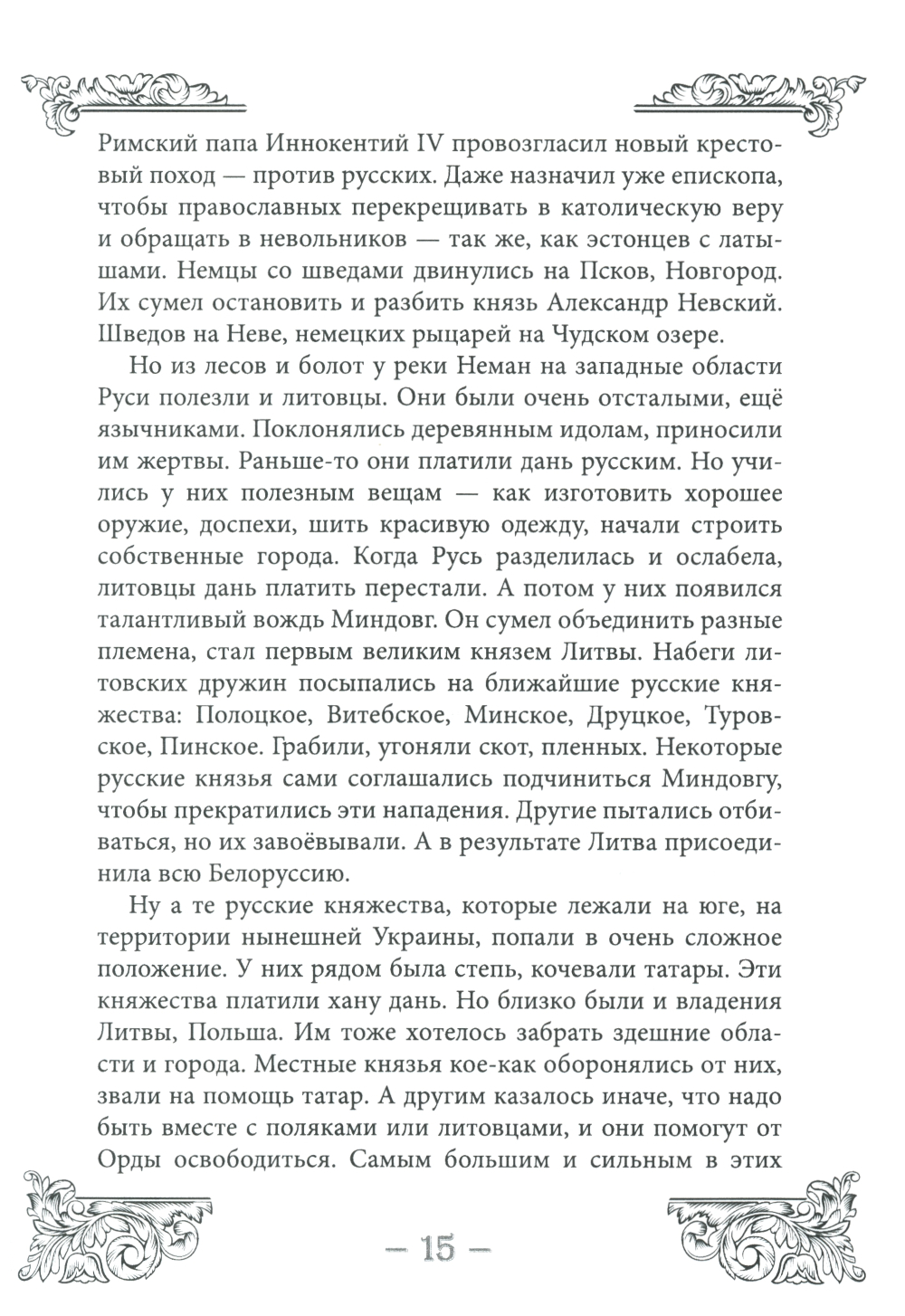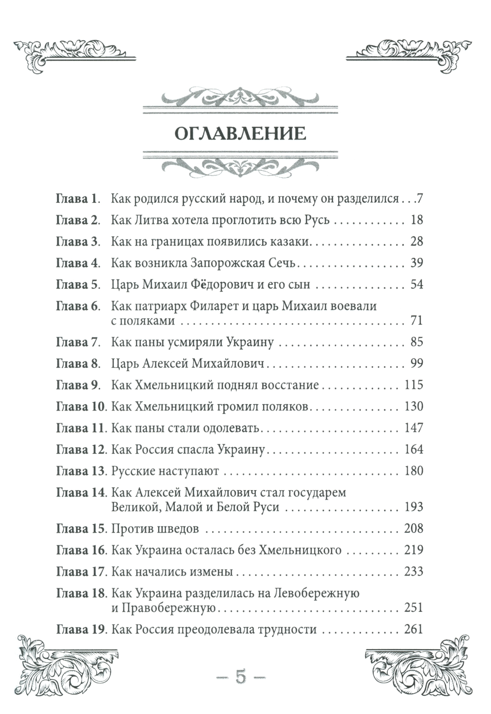 В XIII-XIV веках нашествия завоевателей разделили русский народ. Часть его очутилась в составе Польши и Литвы. Она попала в жесточайшее рабство к иноземцам и иноверцам-католикам. А протесты и бунты подавлялись самым зверским образом. В 1648 году поднял восстание Богдан Хмельницкий. Его тоже раздавили бы, но на помощь пришёл русский государь Алексей Михайлович. Они с Хмельницким никогда не встречались, но делали одно дело. Под властью России воссоединили две ветви одного народа, спасли Украину от полной гибели. Хотя для этого пришлось выдержать тяжелейшие войны не только с поляками и литовцами, но и со шведами, Крымским ханством, турками, даже с украинскими изменниками - теми, кого западный мир соблазнил своим образом жизни и продажными благами. О данных событиях рассказывает новая книга известного писателя-историка Валерия Шамбарова. Она специально написана простым и доступным языком, понятным для любого школьника - чтобы и подростки в полной мере оценили великие свершения нашего прошлого. Ведь оно напрямую перекликается и с настоящим, и с будущим.