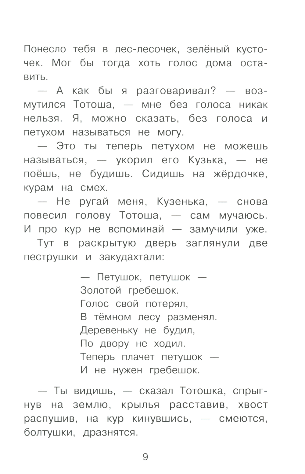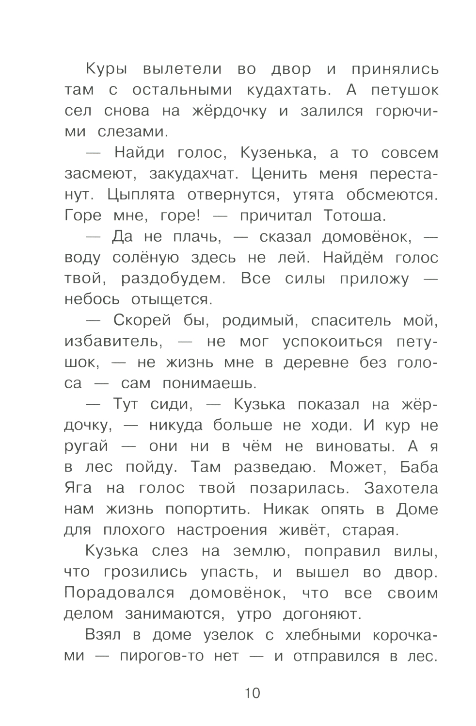 Сказочная повесть Галины Александровой о приключениях домовёнка Кузьки, который вместе со своим другом Лешиком отправился в лес на поиски голоса петушка Тотошки.| Издательство | Стрекоза |