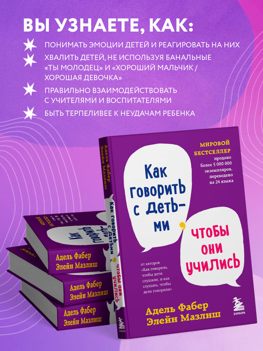 Must-have для родителей, которые хотят, чтобы их дети не только хорошо учились, но и стали успешными во взрослой жизни. Самые известные в мире специалисты по общению с детьми, авторы многомиллионного бестселлера «Как говорить, чтобы дети слушали, и как слушать, чтобы дети говорили» Адель Фабер и Элейн Мазлиш предлагают уникальную стратегию общения с детьми, с помощью которой можно приучить детей к сосредоточенности, самодисциплине и ответственности, мотивировать их на успех. УНИКАЛЬНЫЕ СТРАТЕГИИ ОБЩЕНИЯ, ПРОСТЫЕ И ДОСТУПНЫЕ ДИАЛОГИ, НАГЛЯДНЫЕ КОМИКСЫ. Благодаря этой книге вы узнаете: • как достичь взаимопонимания, не прибегая к наказаниям и угрозам; • как развить у ребенка интерес к учебе; • как помочь ему наладить отношения с одноклассниками и учителями.| Издательство | Эксмо |