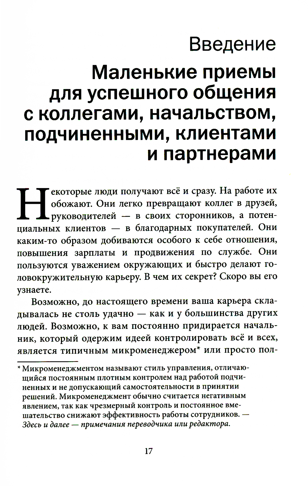 Некоторые люди обладают редким даром превращать коллег по работе в друзей, своих руководителей и подчиненных - в преданных сторонников, а потенциальных клиентов - в благодарных покупателей. Они каким-то образом добиваются особого к себе отношения, пользуются уважением окружающих и быстро делают головокружительную карьеру. Однако многие из этих людей ничуть не умнее вас, и выглядят они ничуть не лучше. Секрет их успеха сводится к одному: они более искусно общаются с окружающими.