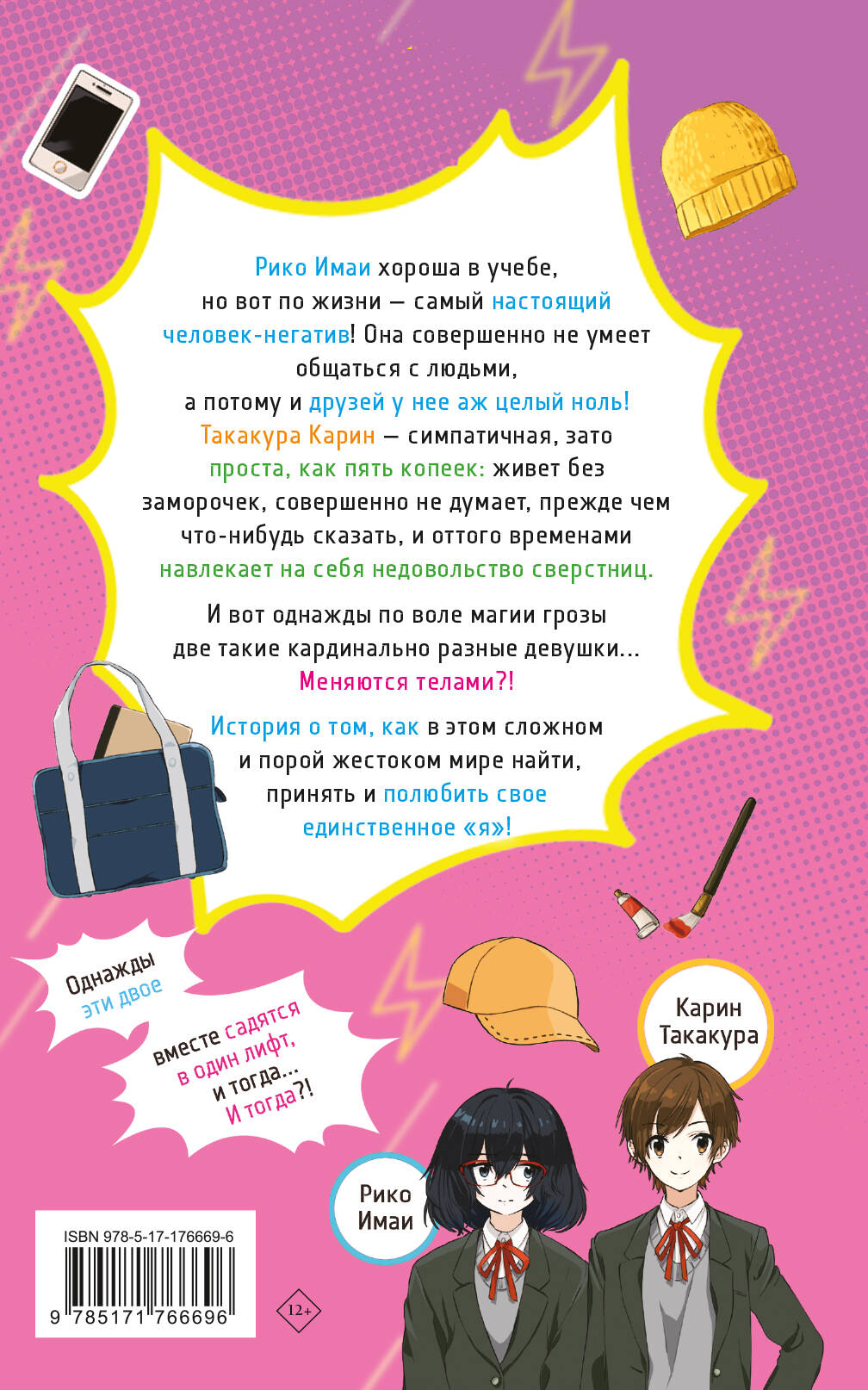 Рико Имаи хороша в учёбе, но вот по жизни - самый настоящий человек-негатив! Она совершенно не умеет общаться с людьми, а потому и друзей у неё аж целый ноль! Такакура Карин - симпатичная, зато проста, как пять копеек: живёт без заморочек, совершенно не думает, прежде чем что-нибудь сказать, и оттого временами навлекает на себя недовольство сверстниц. И вот однажды по воле магии грозы две такие кардинально разные девушки... Меняются телами?! История о том, как в этом сложном и порой жестоком мире найти, принять и полюбить своё единственное "я"!| Издательство | Издательство "АСТ" |
