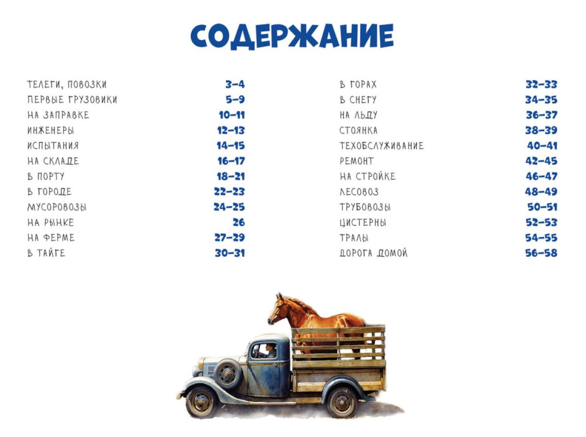 В книге в увлекательной и познавательной форме рассказывается о роли различных грузовых машин в жизни людей. Красочные иллюстрации в стиле акварельного рисунка посвящены работе грузовиков в городе и сельской местности, в горах, тайге и на стройках. Здесь можно увидеть первые грузовики, контейнеровозы, мусоровозы, лесовозы, цистерны и тралы, заглянуть в морской порт, на сельскую ферму и в ремонтную мастерскую. Книга предназначена для детей дошкольного и младшего школьного возраста.| Издательство | ИЗД.ПАНФИЛОВА |