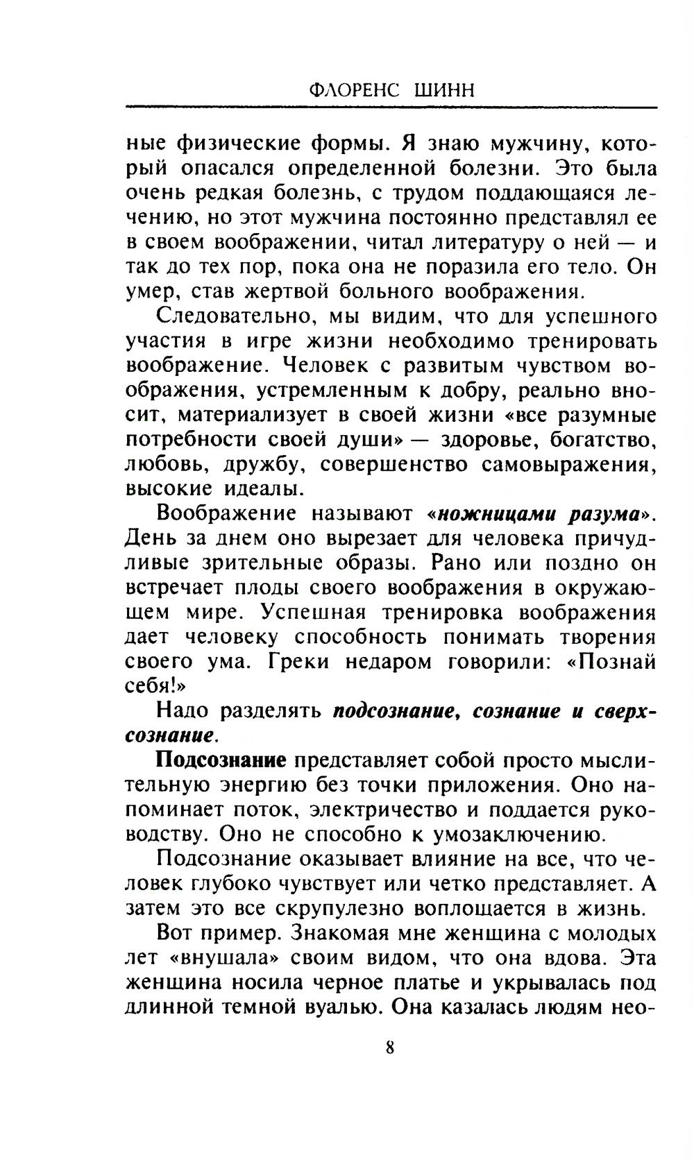 Автор книги, известная на Западе писательница Флоренс Шинн, утверждает: жизнь - игра, и от нас самих зависит, сумеем ли мы в ней преуспеть. Наши мечты влияют на воображение. То, о чем мы молим, глубоко отпечатывается в душе. Эти образы рано или поздно обретают плоть и кровь. Мы встречаемся со своими проекциями, но не узнаем их; негоду-ем, боремся и ропщем, забывая о главном. А между тем можем вернуть любимого, получить крупную сумму денег и при-обрести неограниченное влияние, надо лишь знать правила, по которым следует играть. В книгу вошло четыре произведения Флоренс Шинн: «Игра жизни и как в нее играть», «Ваше слово - волшебная палочка», «Потайная дверь к успеху», «Сила изреченного слова».| Издательство | Центрполиграф |