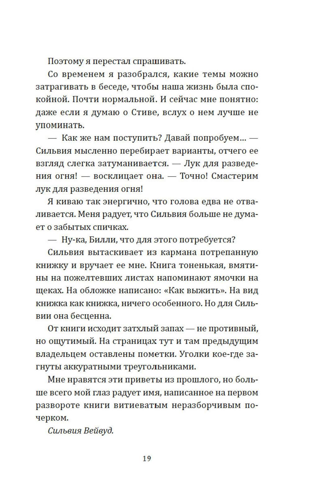 За свою короткую жизнь второклассник Билли хорошо усвоил правила выживания. Разжечь огонь, построить укрытие и добыть пищу - это он научился делать чуть ли не с закрытыми глазами. Но вот чего мальчик не понимает, так это зачем мама настаивает, чтобы он освоил навыки, которые, скорее всего, никогда не пригодятся в комфортной лондонской жизни. Положение вещей меняется в один миг, когда в мире вспыхивает эпидемия загадочного вируса и все вокруг погружается в хаос. Город становится ловушкой, а Билли с друзьями вынуждены броситься наутек в поисках безопасного убежища. Теперь все умения мальчика проходят настоящую проверку - и последствия любого его поступка становятся реальными, а порой смертельно опасными. Захватывающая история о выживании, мужестве перед лицом катастрофы и непредсказуемости мира раскроет, что значит быть героем, готовым к любым испытаниям.