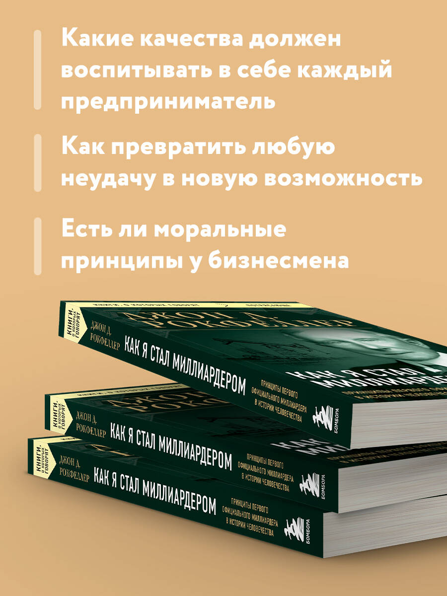 «Как я стал миллиардером» - это руководство по достижению целей от самого богатого человека в современной истории. Джон Дэвисон Рокфеллер - американский бизнесмен и филантроп. В 31 год он основал компанию Standard Oil, а через несколько лет уже контролировал 90% американского нефтяного бизнеса. Большую часть своей жизни он занимался благотворительностью, а в 1913 году учредил фонд, который существует по сей день. В эквиваленте на 2021 год его состояние оценивалось более чем в 400 миллиардов долларов. В этой книге Рокфеллер рассказывает о своем пути к богатству, правилах успеха, моральных принципах бизнесмена и качествах, которые должен воспитывать в себе каждый предприниматель. Вы научитесь достигать поставленных целей и узнаете, как превратить любую неудачу в новую возможность.| Издательство | ООО "Издательство "Эксмо" |
