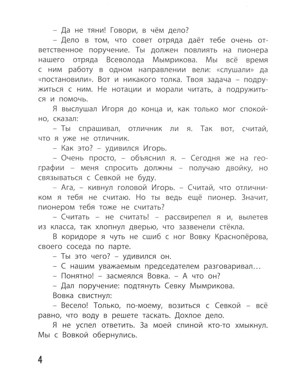 В пятом «Б» Костя Горохов был примерным учеником, а Севка Мымриков -отпетым шалопаем и двоечником. Предложение подтянуть отстающего товарища Константин воспринял без энтузиазма. Но не мог же он ударить лицом в грязь, если за его действиями наблюдает весь класс, в том числе и самая замечательная на свете девочка Ира Зимина!.. Весёлую повесть о дружбе и взаимовыручке написал замечательный советский и российский писатель Геомар Куликов. Для младшего и среднего школьного возраста.| Издательство | ЭНАС-КНИГА |