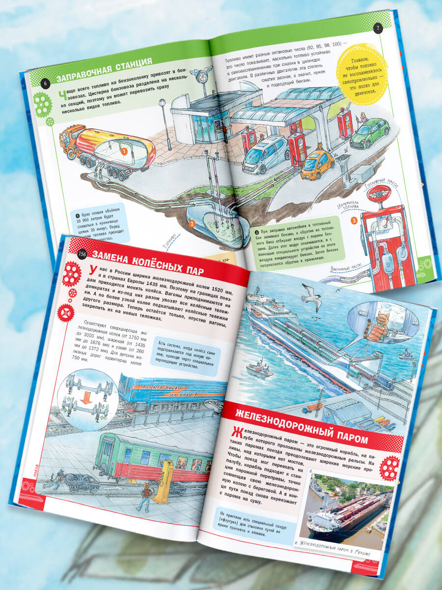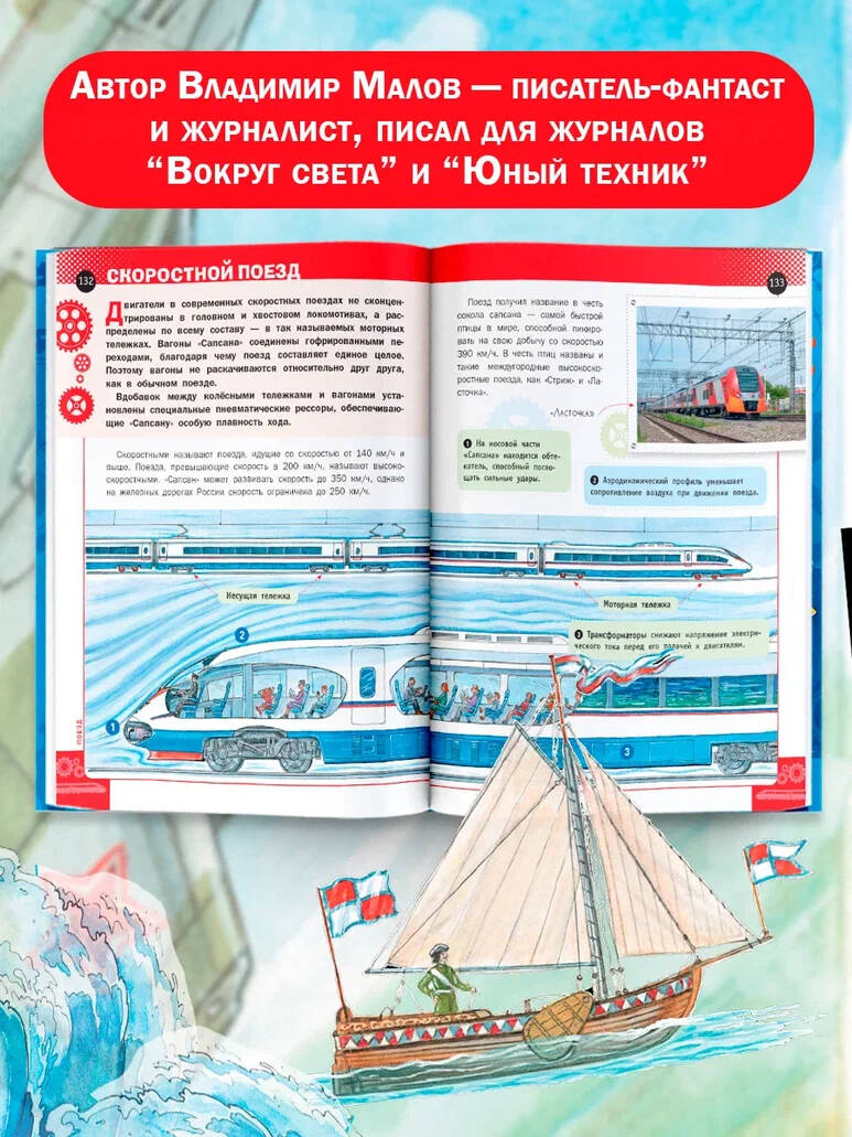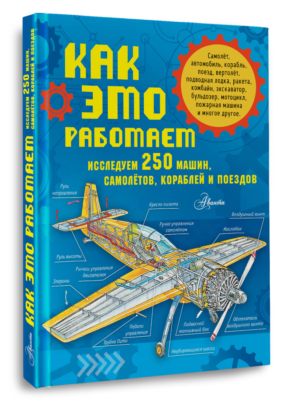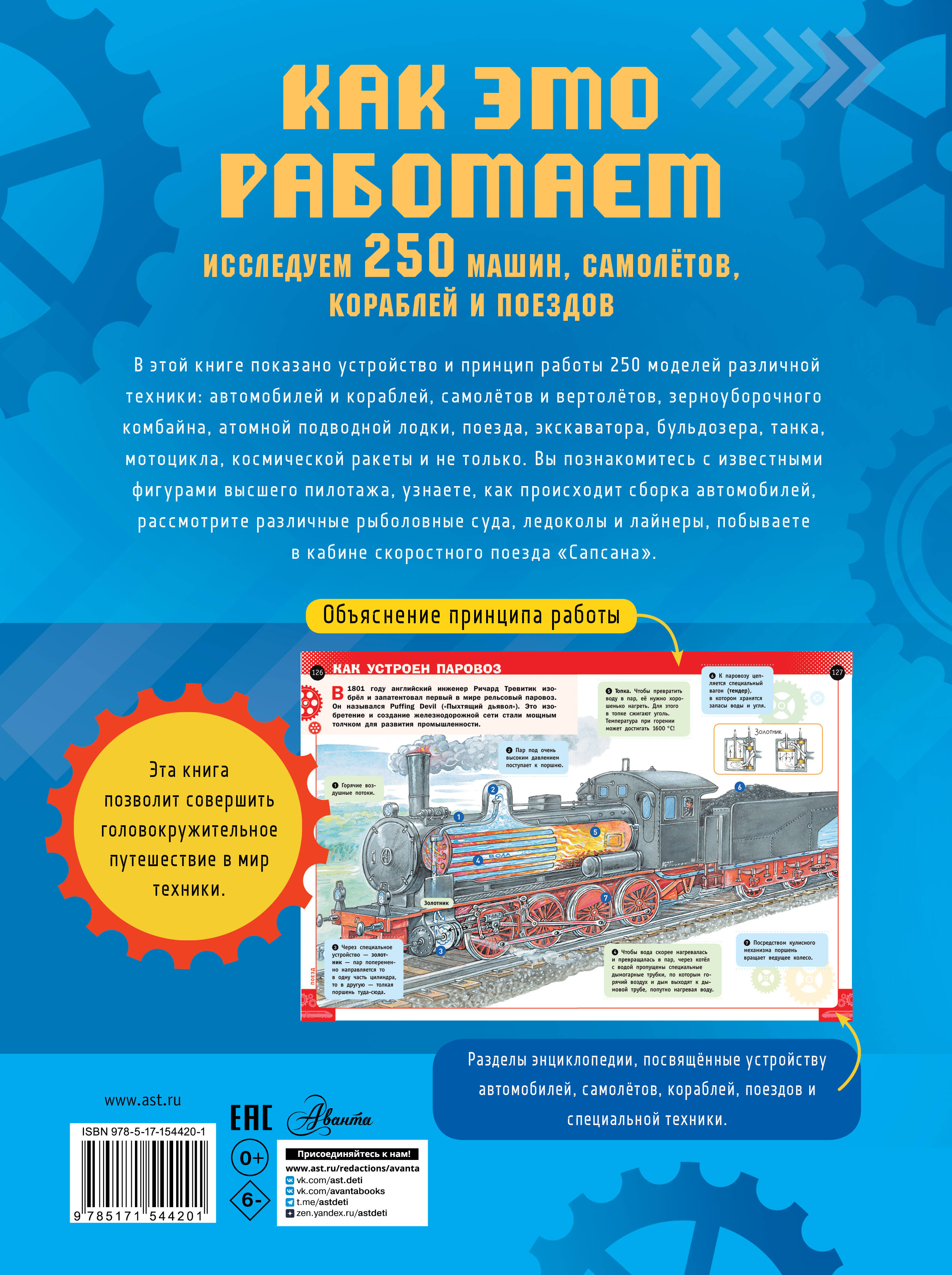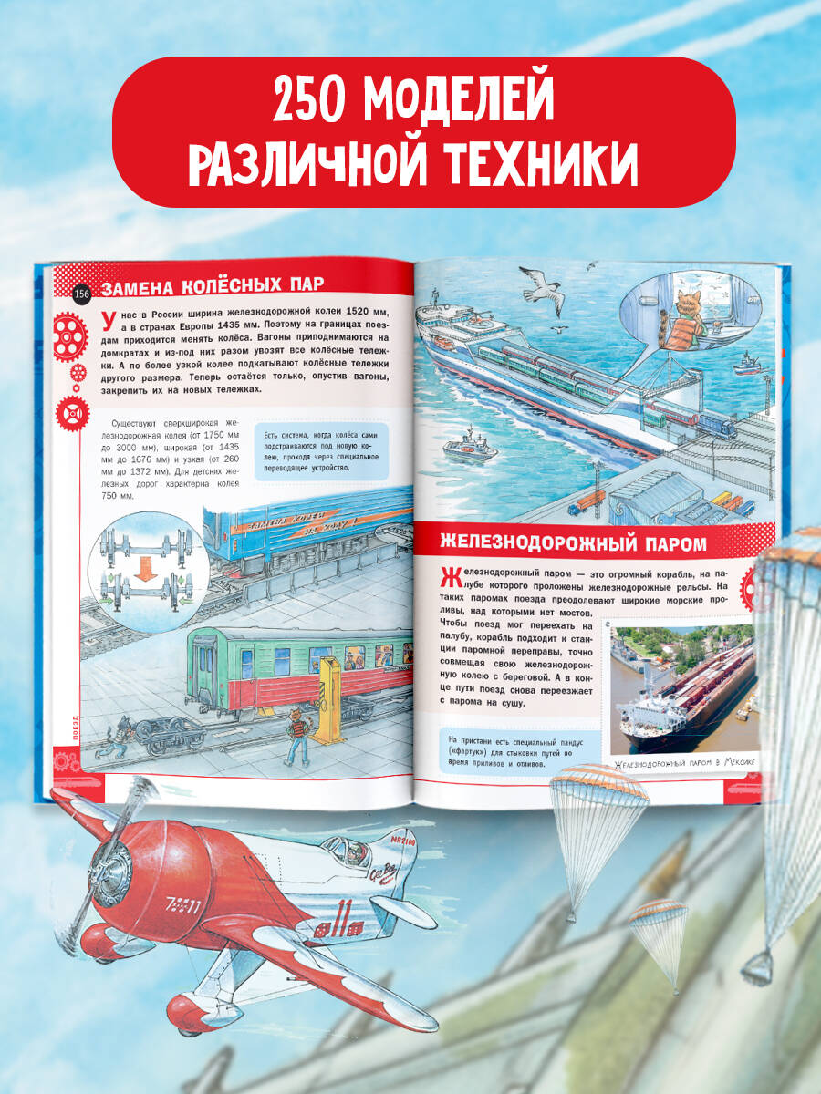 В этой яркой энциклопедии показано устройство и принцип работы 250 моделей различной техники: автомобилей и кораблей, самолётов и вертолётов, поездов, а также зерноуборочного комбайна, атомной подводной лодки, экскаватора, бульдозера, танка, мотоцикла, космической ракеты. Вы познакомитесь с известными фигурами высшего пилотажа, узнаете, как происходит сборка автомобилей, рассмотрите различные рыболовные суда, ледоколы и лайнеры, побываете в кабине скоростного поезда "Сапсана". На каждой странице вас ждут детальные рисунки, схемы и фотографии, простые объяснения и множество интересных фактов о мире техники. Для младшего школьного возраста.