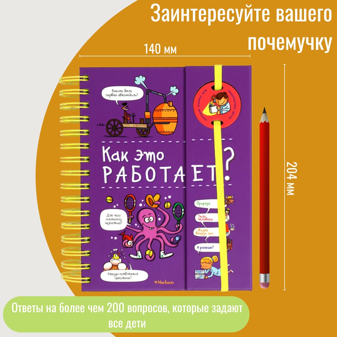 Для чего осьминогу щупальца? Откуда появляется цыплёнок? Как функционирует глаз? Как устроен коровий желудок? Как работает башенный кран? Как устроен средневековый замок? Как образуются морские волны? Что такое вакцина? В этой книге есть ответы на более чем 200 вопросов, которые задают все дети, но на которые не все взрослые могут сразу ответить! 4 темы: Природа, Тело человека, Жизнь вокруг нас, А раньше?| Издательство | Махаон |