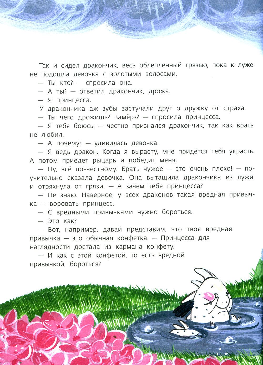 Чем больше боялся дракончик, тем меньше и прозрачнее он становился. С одной стороны, так его не заметят кошмары. А с другой, если он сильно будет бояться, он и вовсе может исчезнуть! И вот однажды маленькому дракончику приходится столкнуться со своим самым БОЛЬШИМ страхом - Принцессой… Детская психология деликатна и затейлива, поэтому для развития эмоционального интеллекта ребёнка требуется особый подход. С такой задачей в современном мире успешно справляется сказкотерапия. Добрые, весёлые и трогательные истории о дружбе и взаимопомощи в увлекательной и интересной форме научат ребёнка эмпатии, пониманию и способам преодоления своих страхов.| Издательство | ИД Мещерякова |