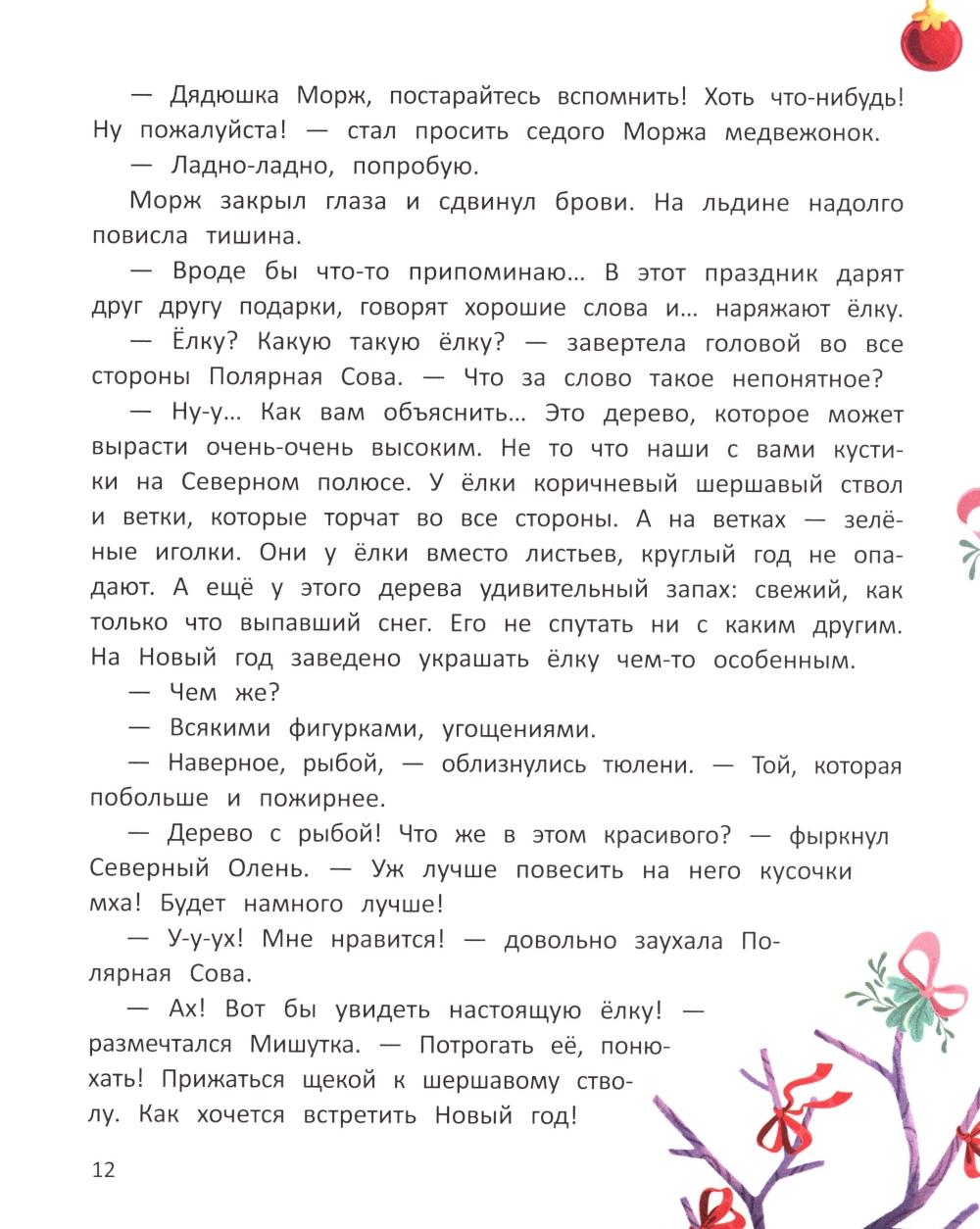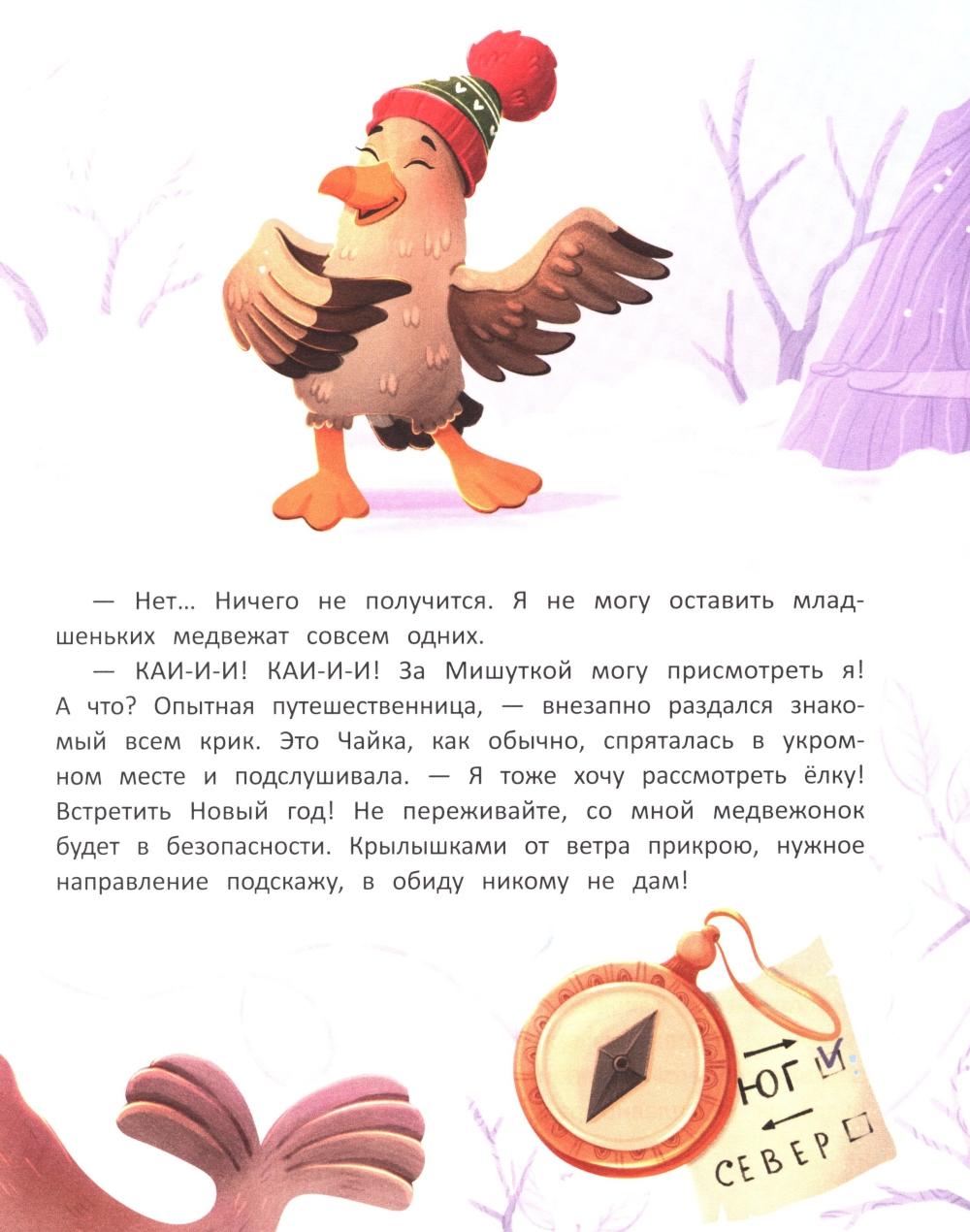 Что такое Новый год Сугробы мандарины подарки фейерверки и конечно же хороводы вокруг нарядной ёлки. А теперь представь что есть край где об этом празднике узнали впервые. Грустно стало его обитателям. Зверятам тоже захотелось полюбоваться новогодними огоньками повеселиться потанцевать. Медвежонок Мишутка и храбрая Чайка решают отправиться в путешествие чтобы привезти домой на Северный полюс настоящую ёлку. В пути их ждут неожиданные встречи и новые друзья. Добрая зимняя сказка о любопытстве смелости волшебстве которые можно найти если верить в мечту. Читатели станут участниками увлекательного морского путешествия за новогодней ёлкой благодаря игре ходилке. Их ждут яркое игровое поле весёлые задания и возможность играть всей семьёй.| Издательство | Феникс |