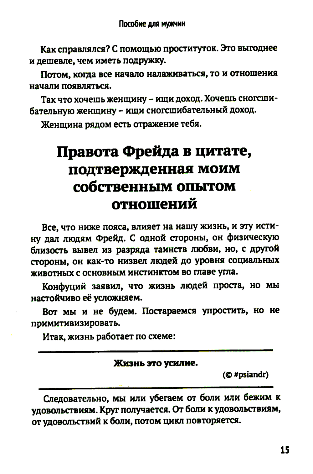 Простые истины даются нам сложнее всего. Чтобы понять, принять и встроить в свою психику простые истины просто необходимо совершить массу ошибок. Умный человек сказал, что опыт - это результат неверных решений, а неверные решения - это последствия недостаточного опыта. Отношения между мужчиной и женщиной - всё это на самом деле просто. Необходимо принять всего три простые истины, принять их нужно мужчине. Книга как раз именно про это - про простые истины, которые надо осознать. Как выжить рядом с женщиной? Ответ вы прочитаете в этой книге. Издание рекомендовано широкому кругу читателей.| Издательство | Галактика |
