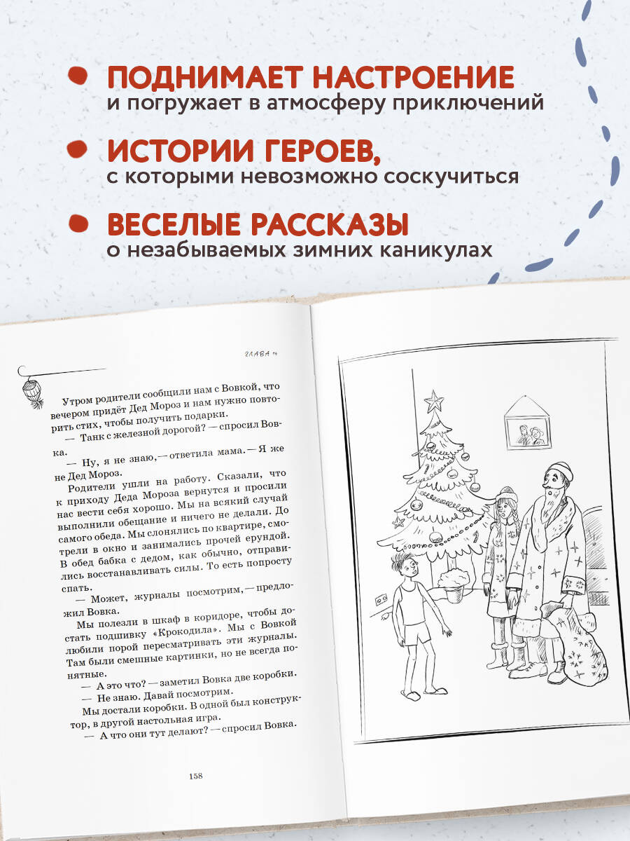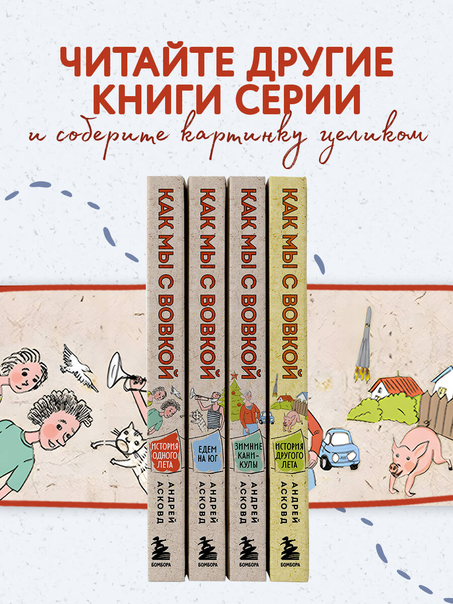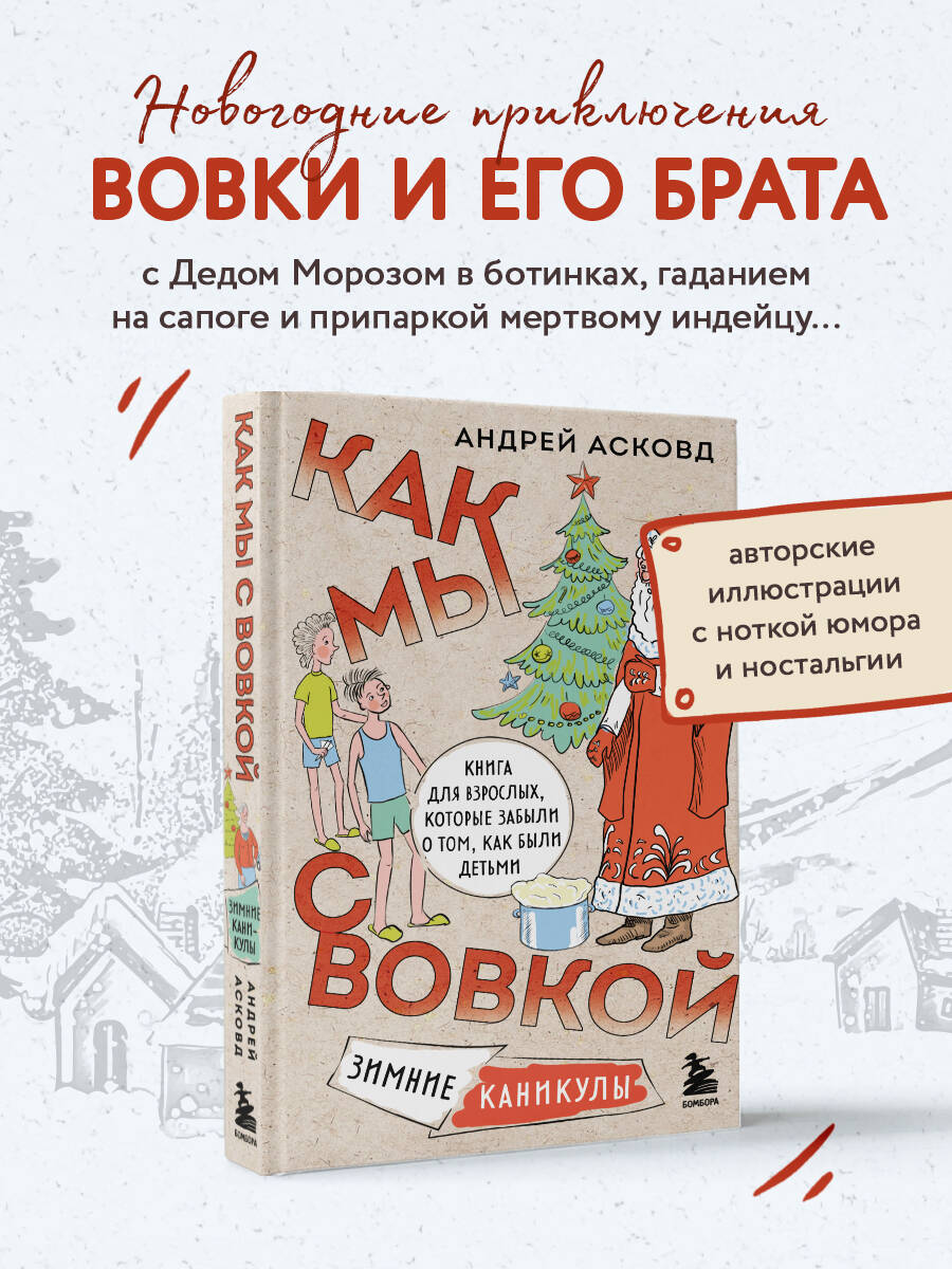 Топ электронных продаж и сотни отзывов от читателей. Авторские иллюстрации - к каждой главе. Которые делают все истории еще более живыми и… правдивыми. Искрометный юмор, который будет близок и понятен и тем, кто вырос в СССР, и, конечно, их детям. Новая книга о веселых приключениях Вовки и его брата на сей раз переносит нас в предновогоднюю праздничную атмосферу большого города. Бабка с дедом приезжают в гости к внукам на зимние каникулы, и их ждет масса приключений. Начиная от первой поездки в метро и заканчивая посещением елки и Красной площади. Пройти все испытания достойно им помогает чувство юмора и небольшая доля бабкиного цинизма и простоты: «Год новый, а идиоты старые». Но самое главное то, что вся семья собралась под Новый год вместе. «Это невероятно душевные и смешные рассказы. Как жаль, что они закончились, но надеюсь, что еще будут новые. Прочитала все 3 книги "Как мы с Вовкой". Смеялась зачастую до слез. Читала, когда настроение было не очень. Так хорошо было окунуться в беззаботное советское детство». «Отличная книга! Спасибо за полученное удовольствие. Рекомендую друзьям и знакомым. Смех - лучшее лекарство! Принимайте по несколько глав в день, перед сном, пока не пройдете полный курс смехотерапии ("Как мы с Вовкой. История одного лета"; "Как мы с Вовкой. Едем на юг"; "Как мы с Вовкой. Зимние каникулы")». «Книга замечательная! Огромное спасибо автору за воспоминания о детстве! Смех, хорошее настроение обеспечил! Прочитала сама, а потом ещё и всей семье! Ждём продолжения!»