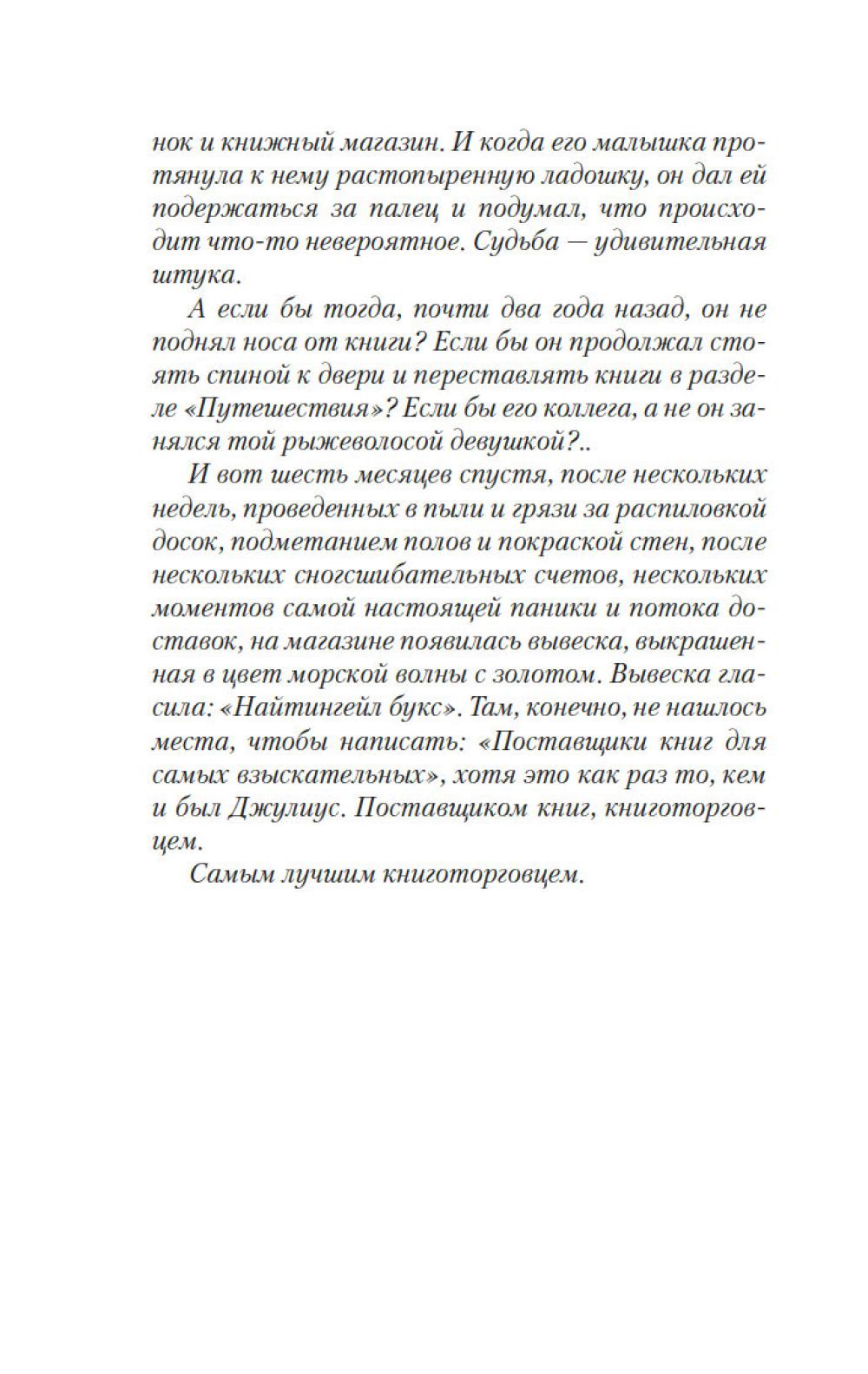 Не книжный магазин, а мечта книголюба! Многим жителям этого идиллического английского городка было приятно заглядывать сюда, чтобы поздороваться с приветливым хозяином, потолковать о литературе, да и вообще о жизни. Магазин радовал покупателей более трех десятков лет, но случилось так, что его добрый владелец умер и оставил своей дочери Эмилии немало долгов. Неужели придется продать магазин? Для отца это предприятие было не столько бизнесом, сколько образом жизни, и Эмилия решает во что бы то ни стало сохранить отцовское наследство и круг покупателей, ставших для нее близкими людьми. Тем временем местный воротила, положивший глаз на престижное место в центре города и желающий открыть здесь головной офис, предлагает молодой хозяйке солидную сумму, и отказ только разжигает в нем злость. Он придумывает план захвата, но за Эмилию есть кому вступиться. Итак, искренность и добрая воля против бешеных денег и бессовестных махинаций... Кто же победит? Вероника Генри - британская писательница, сценарист и журналист. Ее карьера началась на радио Би-би-си, затем Вероника работала редактором сценариев на Центральном телевидении. Сегодня перу Вероники Генри принадлежит более 20 романов. В 2014 году роман «Ночь в «Восточном экспрессе» был удостоен премии Ассоциации писателей-романтиков.| Издательство | Азбука |