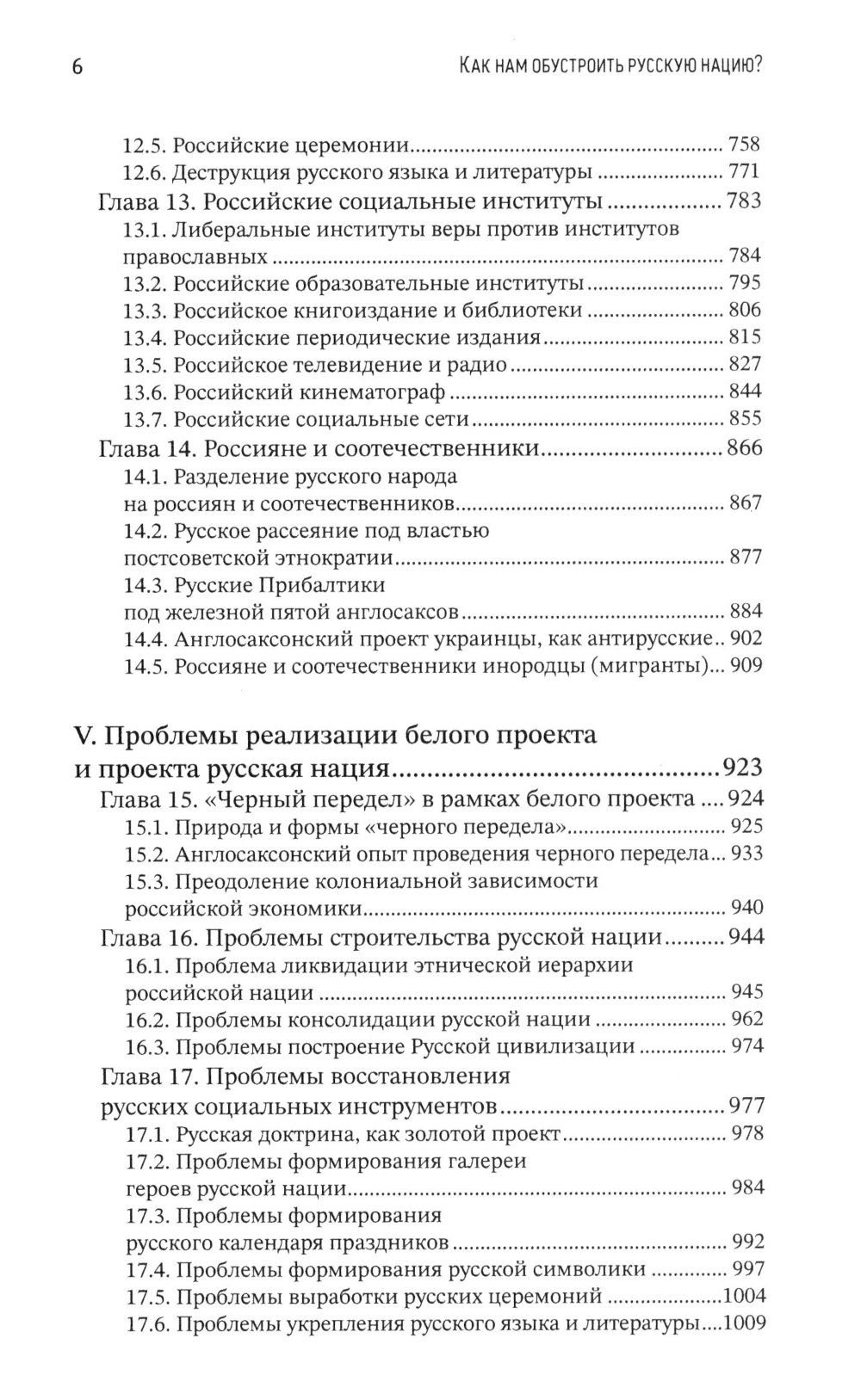 Авторы рассматривают формирование русской нации, как процесс воздействия элит на массы с помощью набора социальных инструментов, институтов и механизмов. Этот технологический подход позволяет понять причины коренных провалов в истории русской нации и обосновать принципы ее «обустройства». Русская нация рассматривается, как союз равноправных народов в противоположность российской нации, которая имеет этноиерархическую структуру. Ознакомление с формулируемыми в работе идеями будет полезно всем тем, кто готов принять активное участие в реализации проекта строительства русской нации.| Издательство | Книжный мир |