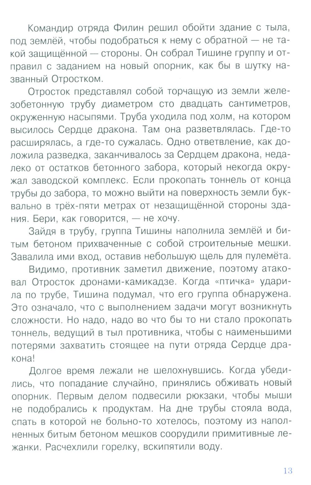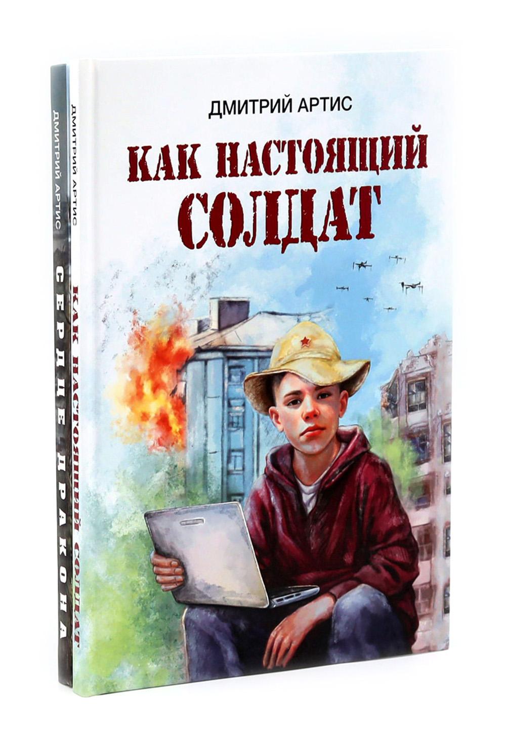 Комплект содержит книги. «Как настоящий солдат» «Вы ещё маленькие, вам рано об этом знать!» - говорят взрослые детям. Но Димка Донских желает разобраться во всём. Когда в класс приходит новенький - Гоша Победоносцев, «который своими глазами видел войну», Димка и его одноклассники по-настоящему задумываются, что такое война и необходимость отстаивать своё человеческое достоинство. А школьная жизнь между тем полна неожиданностей. Дмитрий Артис - российский писатель. Автор семи поэтических книг. Лауреат национальных и международных премий в номинациях «Поэзия», «Драматургия» и «Литературная критика». В 2024 году в издательстве «Яуза» вышел документальный роман «Дневник добровольца», ставший лауреатом премии журнала «Москва» и вошедший в короткие списки федеральных литературных премий «Книга года» в номинации «Герой нашего времени» и «Главкнига», а так же премии имени Владлена Татарского. Участник СВО. Ветеран боевых действий. Награжден медалью «За храбрость». «Сердце дракона» Добровольческий отряд Российской армии готовится штурмовать «Сердце дракона» - последнее здание крупного заводского комплекса. К заводу примыкает посёлок, куда из лагеря беженцев возвращается мирное население, в том числе Савелий с двумя дочерьми - Лизой и Соней. Героев - детей взрослых - ждут неожиданные испытания. Повесть «Сердце дракона» - о ежедневном солдатском труде, о преодолении страха и смирении, о дружбе и преданности, которые становятся щитом против опасностей и трагедий войны.| Издательство | Яуза-каталог |