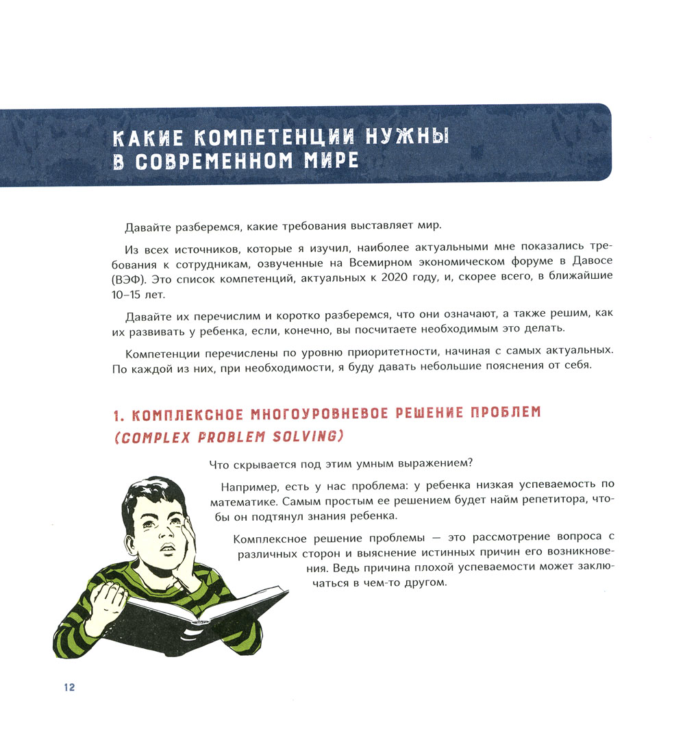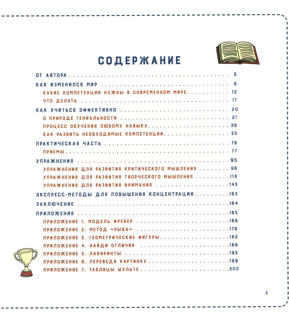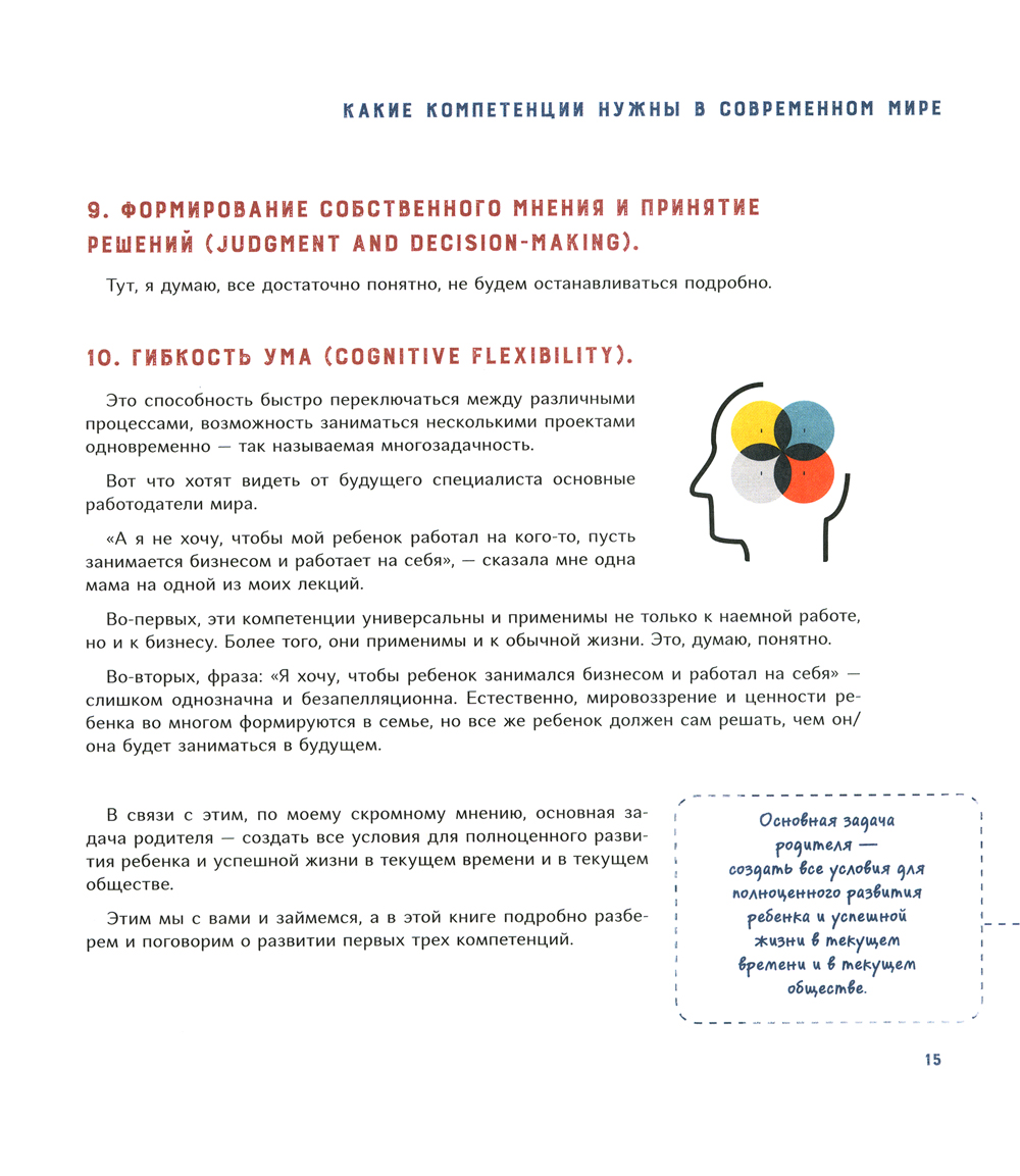 Быть успешным в современном мире - совсем не то же, что 300 лет назад. Мир меняется значительно быстрее, чем мы успеваем заметить. Профессии появляются и исчезают одна за другой. Поэтому у мыслящего родителя возникает вопрос: как подготовить ребенка к будущему? Какие навыки и компетенции понадобятся ему через десять лет и чему учить его уже сегодня? Исходя из современных реалий, автор рассматривает компетенции, которые будут актуальны в будущем, и дает практические упражнения по их тренировке. В этой книге собраны основные приемы, способы и принципы эффективного обучения. Они упростят процесс обучения, но помогут получить более полные и структурные знания по школьным предметам, тратя на это меньше времени. Книга предназначена для родителей школьников и детей старшего дошкольного возраста.| Издательство | ИД "Нева" |