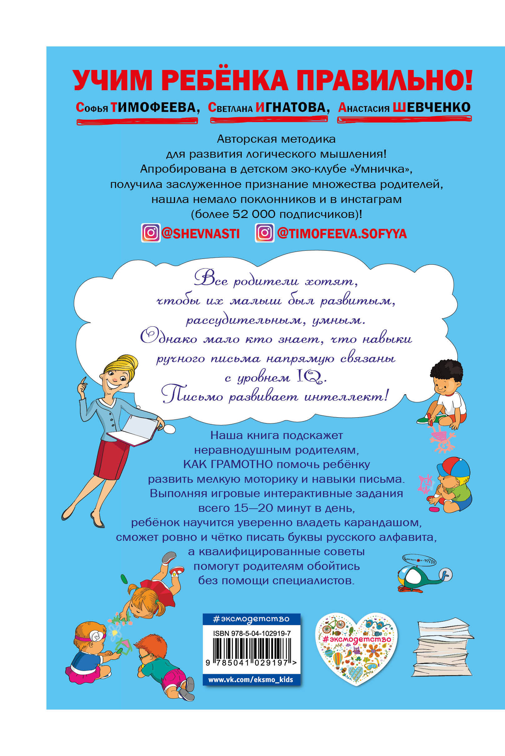 В пособии использована авторская методика по развитию мелкой моторики и навыков письма у дошкольников, успешно прошедшая апробацию в детском эко-клубе «Умничка» и нашедшая немало поклонников в социальной сети «Инстаграм» (более 52 000 подписчиков). Великолепные цветные иллюстрации, интересные, доступные и понятные задания привьют ребёнку интерес к обучению. Выполняя развивающие интерактивные упражнения 15-20 минут в день, ребёнок будет уверенно владеть карандашом, научится ровно и четко писать буквы, а квалифицированные советы помогут родителям обойтись без помощи специалистов. Приобретая эту книгу для своего ребёнка, вы сможете: 1) Развить у ребёнка графические навыки. 2) Развить мышечную и тактильную память, моторику, внимание, воображение дошкольника. 3) Научить ребёнка писать буквы русского алфавита. 4) Благодаря квалифицированным советам заниматься с ребёнком правильно. 5) Сэкономить деньги и время на посещении специалистов.| Издательство | ООО "Издательство "Эксмо" |