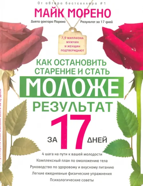 Доктор Майк Морено разработал четкую и простую в выполнении 17-­дневную программу омоложения организма. Читателям предлагается сделать 4 простых шага, чтобы чувствовать себя моложе и здоровее. Каждый шаг программы сфокусирован на омоложении определенных частей вашего тела и организма: от сердца и легких до нервной системы и репродуктивных функций. Автор объясняет, как надо дышать, что нужно делать для укрепления иммунитета, каким образом сохранить гибкость и крепость суставов, остроту зрения и чувств и многое другое. Вы узнаете о своем организме так много интересного, что уже просто не сможете небрежно к нему относиться. Действуйте, у вас все получится!
