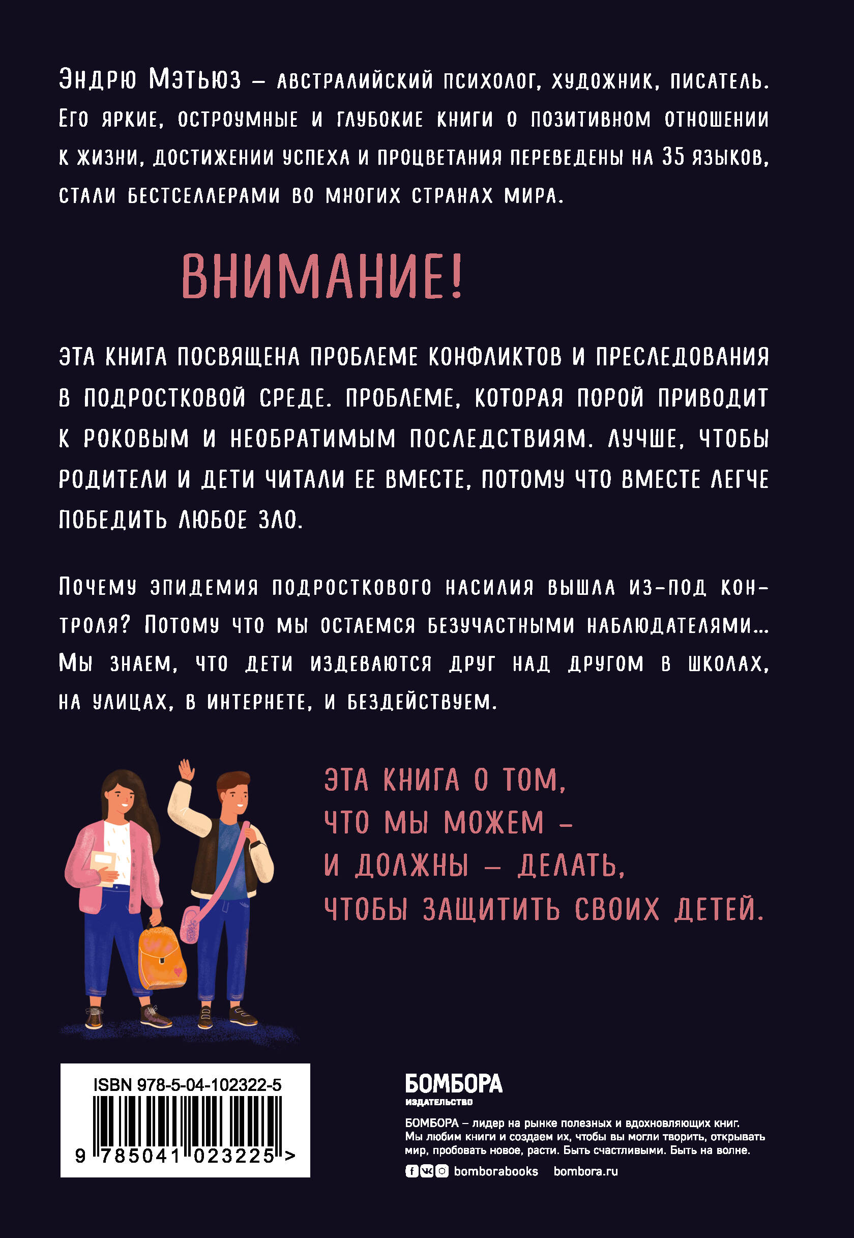 К проблемам подростков знаменитый австралийский психолог и художник, автор бестселлера «Живи легко!», обращался ранее в книге «Прорвемся!». Эта книга тоже адресована тинейджерам и их родителям. Проблема, которой она посвящена, может испугать и шокировать, однако ее невозможно обойти стороной. Это проблема буллинга, унижений и оскорблений в подростковой среде, которые приводят порой к роковым последствиям. А ведь беды можно избежать, если вовремя вмешаться. Тем не менее, родители зачастую даже не догадываются, что происходит с их детьми вне дома, а дети в свою очередь стесняются или не решаются делиться проблемами. В книге подробно рассказывается, что нужно делать подросткам и их родителям в разных ситуациях - от «невинных» обзывательств до реальной травли, угрожающей жизни и здоровью ребенка. Книга учит детей и взрослых доверять друг другу, учиться вместе решать проблемы и, в конечном счете, останавливать любое зло. Как всегда - великолепные рисунки, легкий язык и никакого морализаторства, только откровенный разговор о том, что волнует всех.| Издательство | ООО "Издательство "Эксмо" |