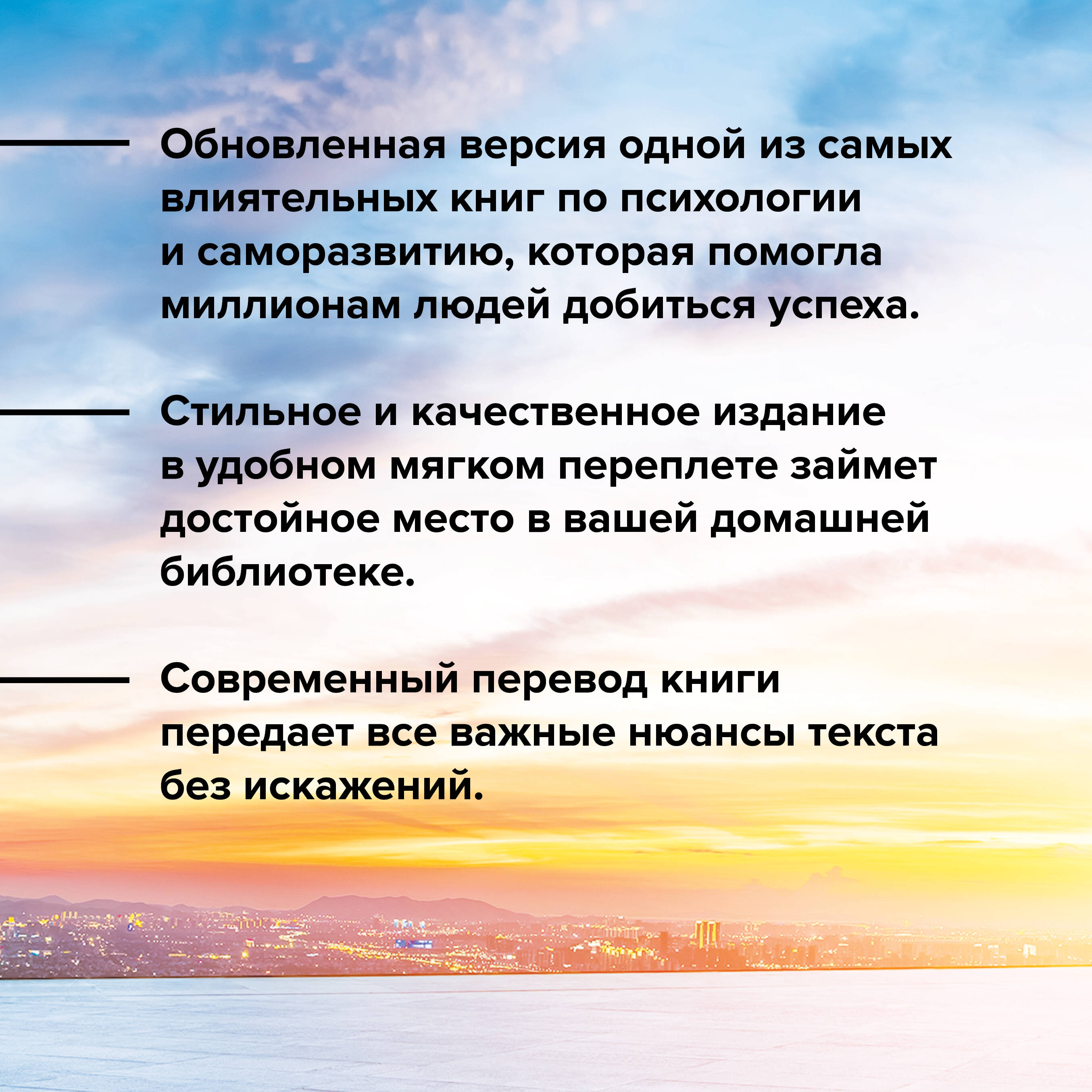 Качественное издание в удобном формате, мягком переплете, которое легко носить с собой, - у вас под рукой всегда будут самые ценные советы Дейла Карнеги. Обновленный впервые за более чем сорок лет вневременной бестселлер Дейла Карнеги "Как перестать беспокоиться и начать жить" - классика, которая улучшила и изменила личную и профессиональную жизнь миллионов людей. Это одна из самых влиятельных книг в мире, она входит во все списки бестселлеров и переведена почти на все языки. Как, почему и зачем нужно научиться любить свою жизнь и получать от нее максимум удовольствия, не жертвуя при этом своими амбициями и желаниями? Сегодня ответ Карнеги как никогда актуален и помогает избавиться от всего, что мешает жить счастливо, принять то, что делает вас сильнее, и отличить первое от второго. Книга "Как перестать беспокоиться и начать жить" научит вас, как: • вытеснить беспокойство из души и жизни; • легко решать проблемы; • находить выход из любой ситуации; • создавать нужное умонастроение; • спокойно реагировать на критику; • избавиться от меланхолии; • преодолеть усталость и быть в тонусе; • перестать переживать и наслаждаться жизнью. Этот бестселлер в новом, современном, полном переводе передает бесценные советы Карнеги без искажения - так, как их сформулировал сам автор.| Издательство | Издательство "АСТ" |