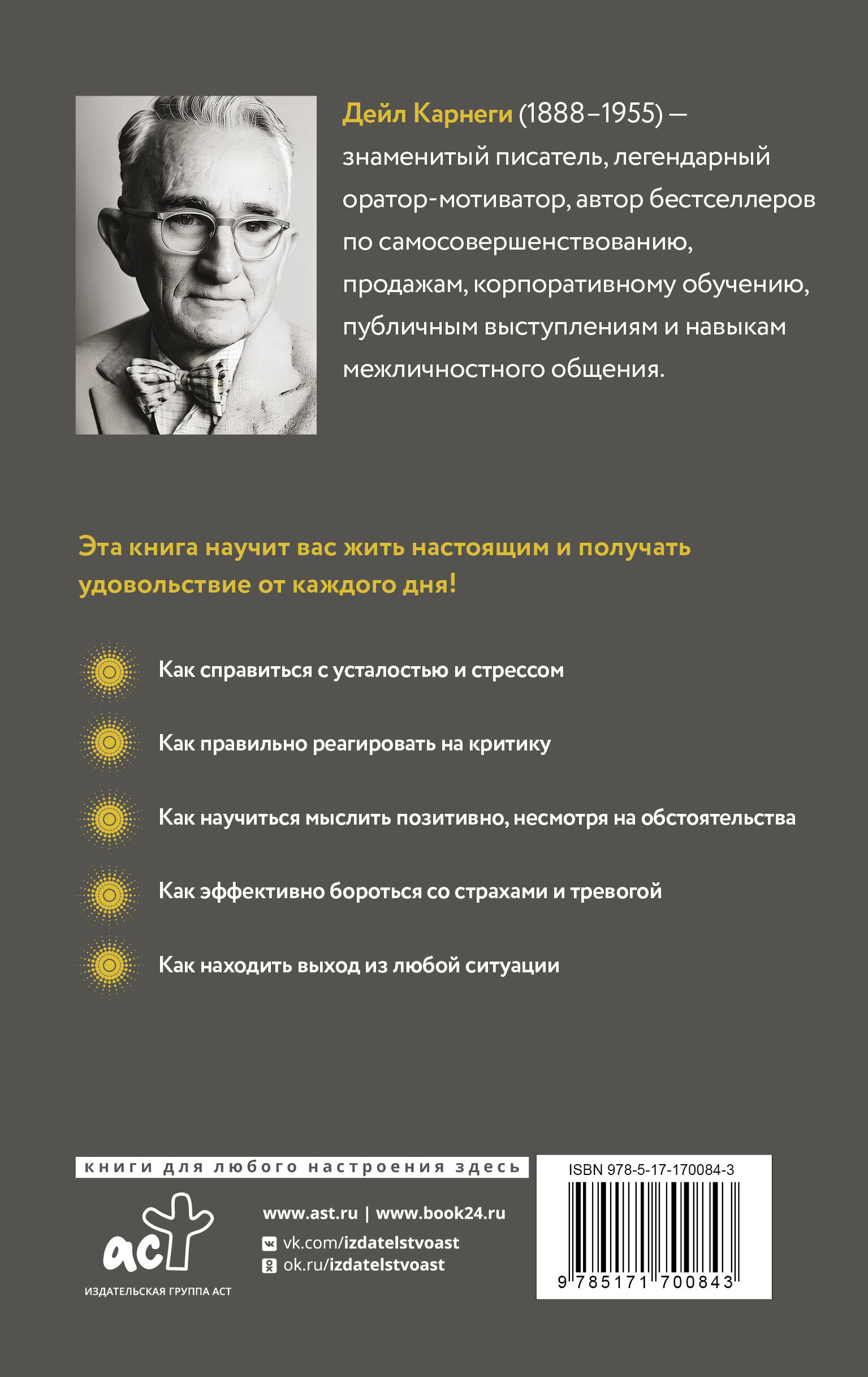 Перед вами обновленное издание вневременного бестселлера Дейла Карнеги - книги, которая изменила жизнь миллионов людей по всему миру. "Как перестать беспокоиться и начать жить" - это практическое руководство, которое помогает справиться с тревогой, укрепить уверенность в себе и научиться радоваться каждому дню. Эта книга станет вашим проводником, если вы: • хотите перестать беспокоиться о будущем и начать наслаждаться настоящим; • стремитесь обрести гармонию с собой и окружающими; • ищете способы развивать свой потенциал и не позволять чужому мнению мешать вашим намерениям. Современный, полный перевод книги передает идеи автора без искажений, а благодаря новому стильному оформлению это издание станет украшением вашей домашней библиотеки. Надежные, проверенные временем советы Дейла Карнеги изменят ваше отношение к жизни и станут неиссякаемым источником вдохновения.| Издательство | Издательство "АСТ" |