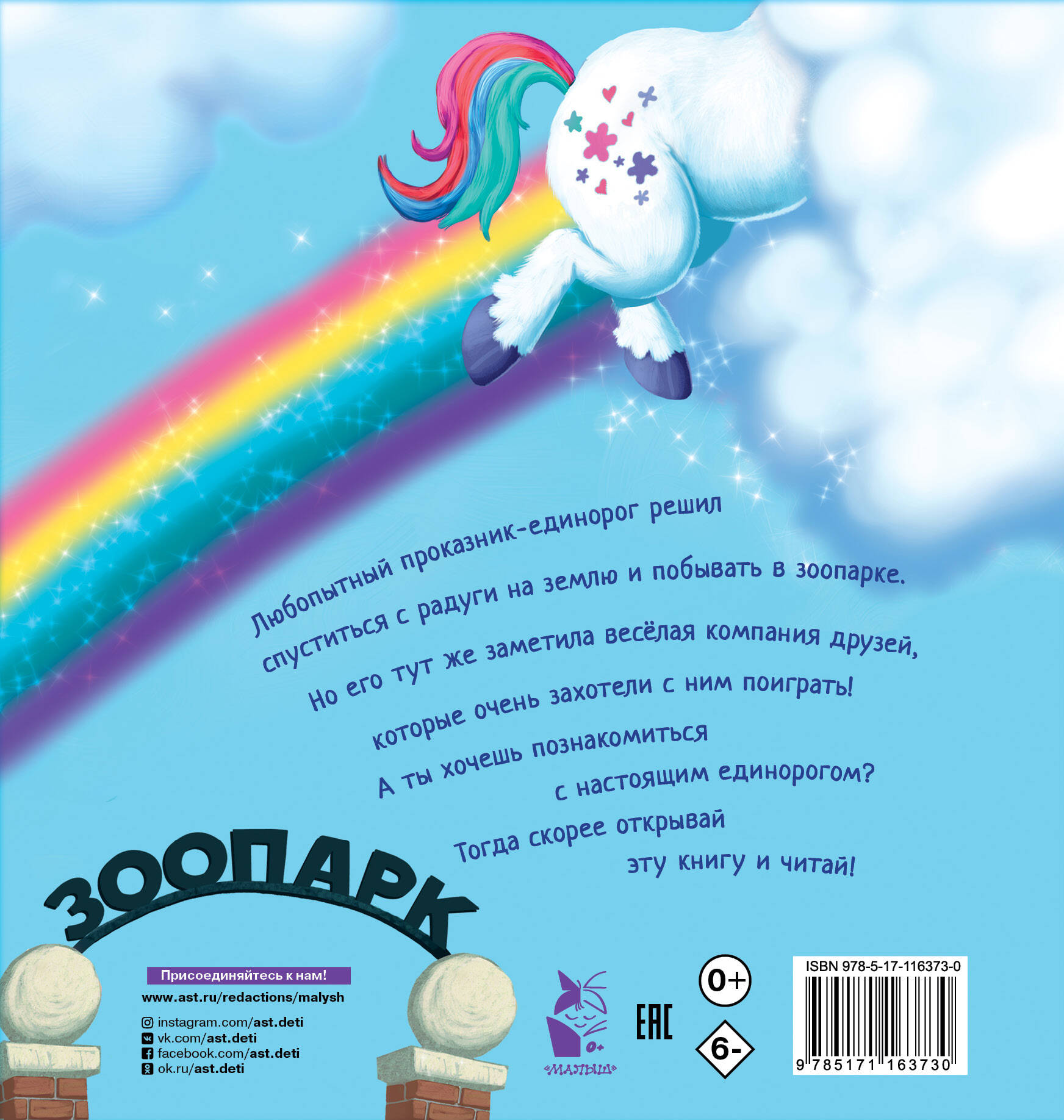 Любопытный проказник-единорог решил спуститься с радуги на землю и побывать в зоопарке. Но его тут же заметила весёлая компания детей, которые захотели с ним поиграть, и чудесному гостю пришлось применить все свои волшебные способности, чтобы убежать от них! А ты хочешь познакомиться с настоящим единорогом и узнать, удалось ли ребятам поймать его? Тогда скорее открывай эту книгу и читай!| Издательство | ИЗДАТЕЛЬСТВО "АСТ" |