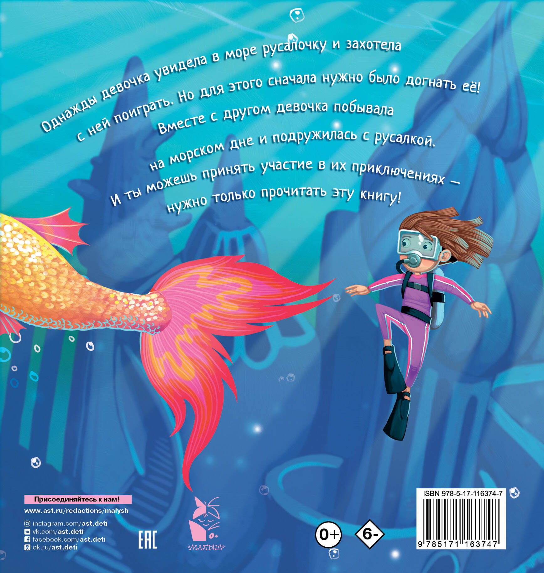 Однажды девочка увидела в море русалочку и захотела с ней поиграть. Но для этого сначала нужно было догнать её! Вместе с другом и его верным псом девочка придумала множество способов поймать русалочку, побывала на морском дне, чудом спаслась от зубастых акул и подружилась с русалкой. И ты можешь принять участие в их приключениях - нужно только прочитать эту книгу!| Издательство | ИЗДАТЕЛЬСТВО "АСТ" |
