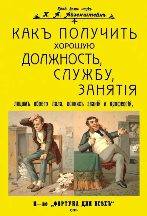 Репринт с издания. - Петроград. Фортуна для всех, 1915. Часть 1 - Практическая, Часть 2 - Техническая: Сборник писем, посылаемых самостоятельно и в ответ на публикации, начинающ. и опыт. уже лицами, на рус. и иностр. яз. Написал Кандидат коммерческих наук К. А. Айзенштейн. - 2-е изд. , знач. доп. и испр. Издание представляет собой образцовое пособие для поиска работы в конце XIX века и включает рекомендации о том, как находить связи и отыскивать вакантные должности, как составлять резюме и вести себя на собеседовании. Прикладываются образцы писем для различных должностей, в т. ч. продавщицы, кухарки, управляющего имением и пр. Полностью актуальна и сегодня. Книга изготовлена по технологии "печать по требованию". Тираж 30 экз.