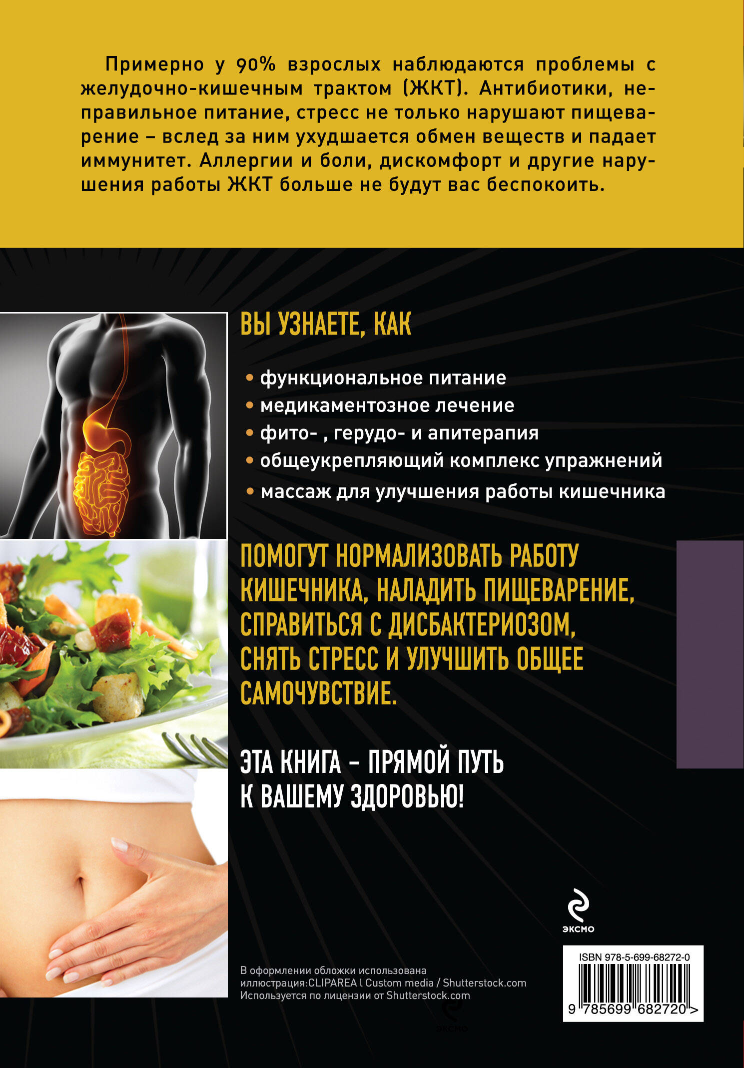 Примерно у 90% взрослых наблюдаются проблемы с желудочно-кишечным трактом (ЖКТ). Антибиотики, неправильное питание, стресс не только нарушают пищеварение - вслед за ним ухудшается обмен веществ и падает иммунитет.Аллергии и боли, дискомфорт и другие нарушения работы ЖКТ больше не будут вас беспокоить. Вы узнаете, как функциональное питание, медикаментозное лечение, фито- , герудо- и апитерапия, общеукрепляющий комплекс упражнений, массаж для улучшения работы кишечника помогут нормализовать работу кишечника, наладить пищеварение, справиться с дисбактериозом, снять стресс и улучшить общее самочувствие. Эта книга - прямой путь к Вашему здоровью!| Издательство | ООО "Издательство "Эксмо" |