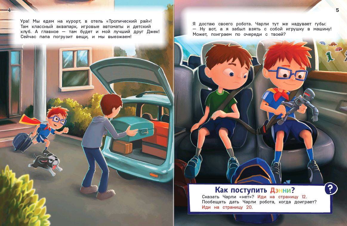 В книгах этой серии показаны непростые ситуации из жизни детей 4-7 лет на каникулах. В конце каждого эпизода им предстоит выбрать один из двух вариантов и увидеть последствия своего выбора. Благодаря таким разветвлениям у истории целых девять концовок!| Издательство | ООО "Издательство "Эксмо" |