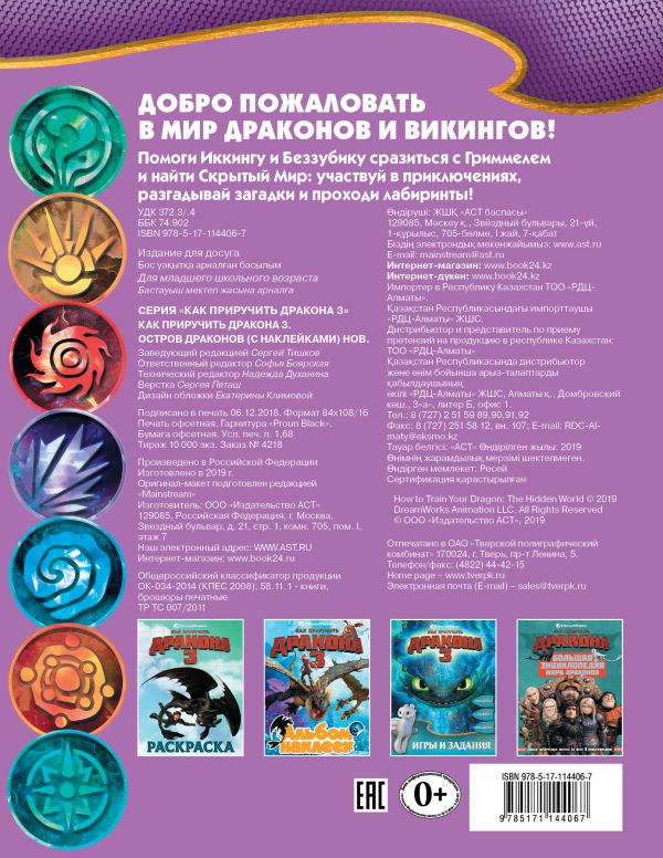 Аннотация: Как приручить дракона 3. Остров драконов (с наклейками)