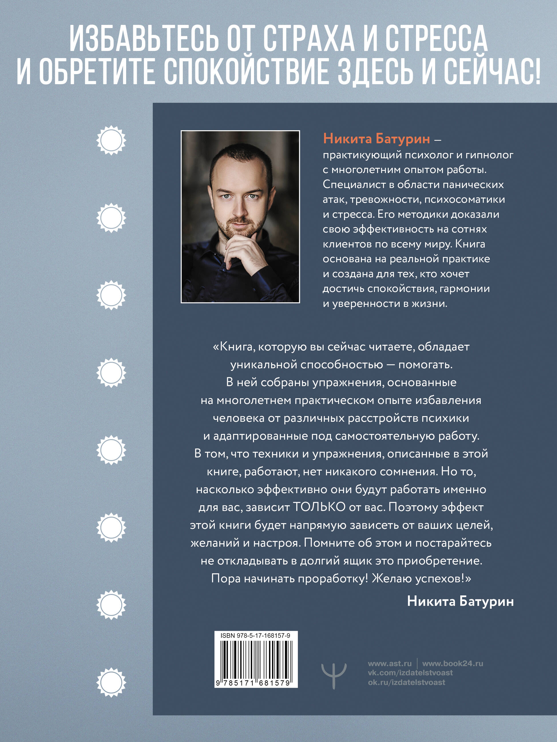 Вы точно справитесь! Со всем этим справитесь. Тревожность, паника и стресс, негативные эмоции и реакции, заложником которых вы стали, абсолютно точно - преодолимы! Психолог-гипнолог Никита Батурин расскажет вам о факторах развития тревожности, о том, чем нормальная тревожность отличается от патологической и как управлять своими эмоциями. Вы получите максимально полезные упражнения из когнитивно-поведенческой терапии, техники релаксации и самопознания, позитивные аффирмации и mindfulness-практики, благодаря которым сможете избавиться от страха и стресса и обрести душевное равновесие здесь и сейчас. Эта книга для вас, если вы хотите: · взять под контроль эмоции и мысли; · разорвать круг тревожности; · проработать свои страхи и негативные установки; · обрести спокойствие и уверенность в себе. Все, что с вами происходит, - лишь реакции вашего тела, но вы сильнее этого и сможете обрести равновесие! Книга в твердой обложке.