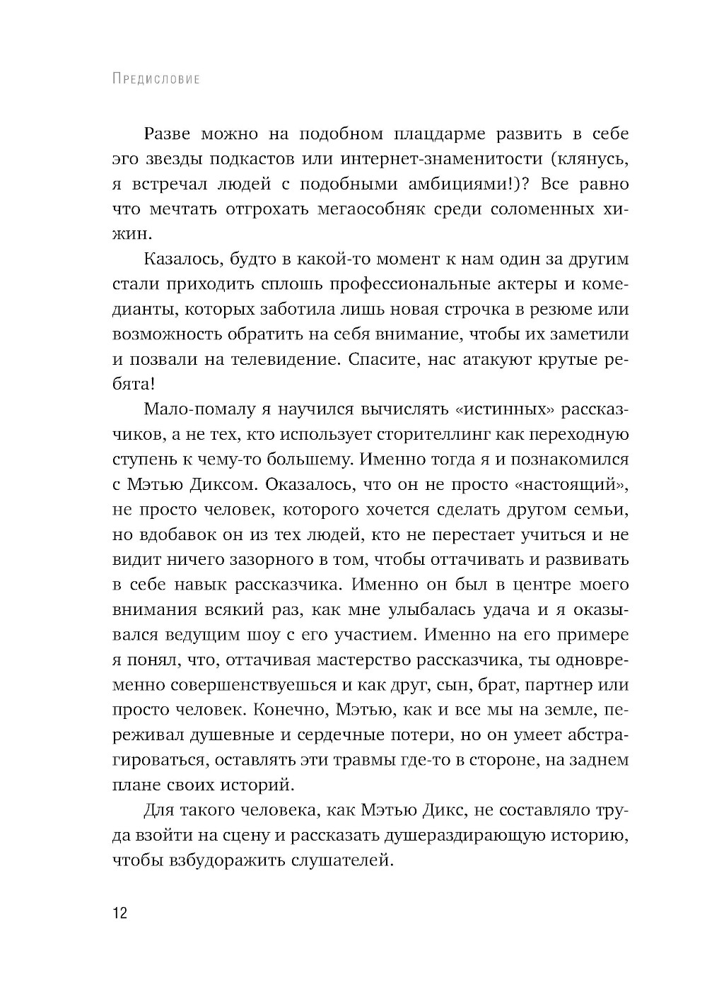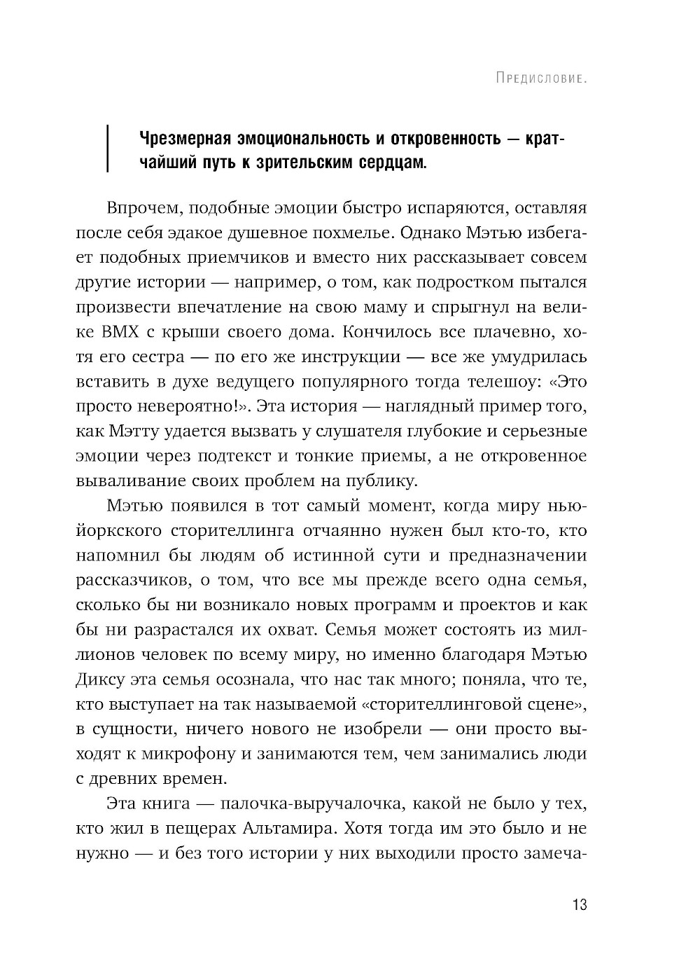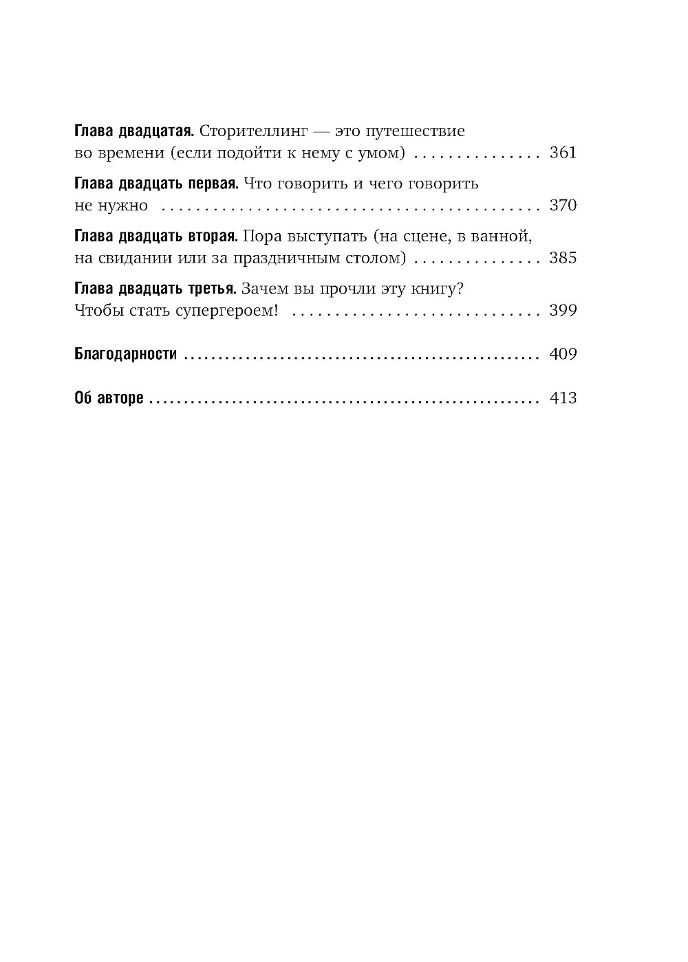 Этот мир полон неинтересных людей. Мы встречаем их каждый день, и в большинстве случаев под совершенно скучной личиной скрывается интересная личность. Такие люди на вопрос «Как прошел день?» выкладывают весь свой дневной маршрут в подробностях - вместо того чтобы поделиться одним, но по-настоящему значимым моментом. Вместо рассказа об отпуске - подробный распорядок дня. Именно из-за них рабочие собрания кажутся бесконечными, семейные ужины - однообразными, а конференции - скучными и демотивирующими. Такие люди боятся рассказывать о неловких моментах или эпических провалах. Им недостает искренности, умения слушать, они страшатся показаться уязвимыми, не умеют создавать и рассказывать хорошие истории. Они - не супергерои. Зато настоящие рассказчики обладают суперсилой. Они могут помочь людям вновь почувствовать себя хорошими и правильными, ощутить себя цельными личностями. Вдохновить и научить. Заставить взглянуть на мир по-новому, поднять настроение. Автор этой книги не способен остановить пулю силой мысли - зато может помочь женщине пережить трагическую потерю. Убедить бунтующего подростка учиться. Рассмешить и растрогать аудиторию за одну историю. Заставить детей просить еще и еще. Может сделать так, что восьмичасовая обучающая сессия пролетит словно пара часов. И этой суперсилой он поделится с вами. Эта книга - руководство и инструкция по применению. Все, что вам нужно - это использовать новые умения на практике. Начать собирать истории и рассказывать их. Стать замечательным рассказчиком.| Издательство | Эксмо |