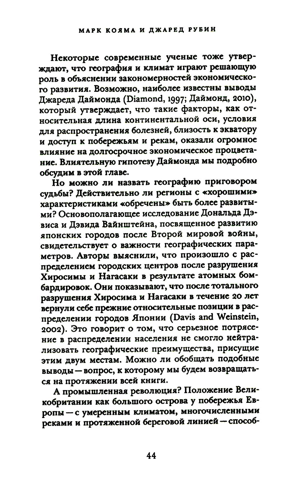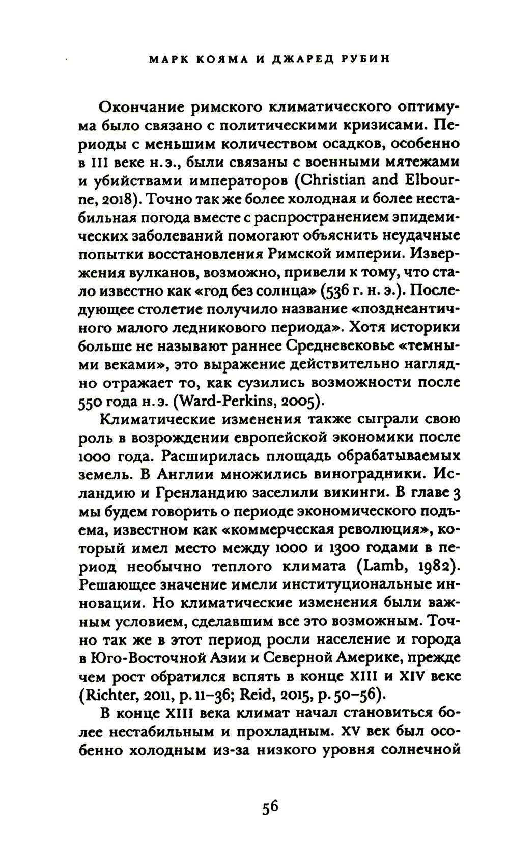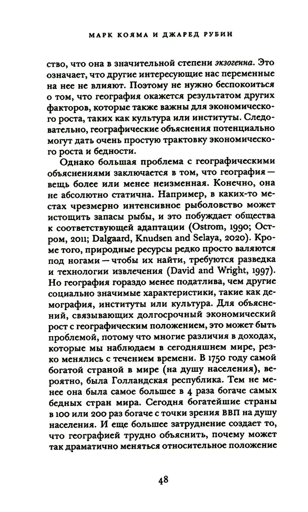 Большинство живущих сегодня людей гораздо богаче своих предков. Почти все свое богатство человечество приобрело за последние два столетия. Как это произошло? Как мир стал богатым? Марк Кояма и Джаред Рубин рассматривают многочисленные теории того, почему современный экономический рост произошел именно тогда и именно там, где он произошел. Они обсуждают появившиеся недавно теории, основанные на географии, политике, культуре, демографии и колониализме. Каждая из этих теорий позволяет объяснить лишь некоторые из ключевых событий на пути к современному богатству. Почему промышленная революция началась в Великобритании XVIII века? Почему некоторые европейские страны, США и Япония догнали ее по темпам роста в XIX веке? Почему другим странам потребовалось время до рубежа XX и XXI веков? Почему некоторые до сих пор отстают? Кояма и Рубин показывают, что на основании прошлого можно делать предположения о том, как страны могут вырваться из бедности. Существуют определенные предпосылки, которые, по-видимому, есть у всех успешных экономик. Но единого рецепта нет. Прошлое общества, его институты и культура играют определяющую роль в его развитии.| Издательство | Изд. Института Гайдара |