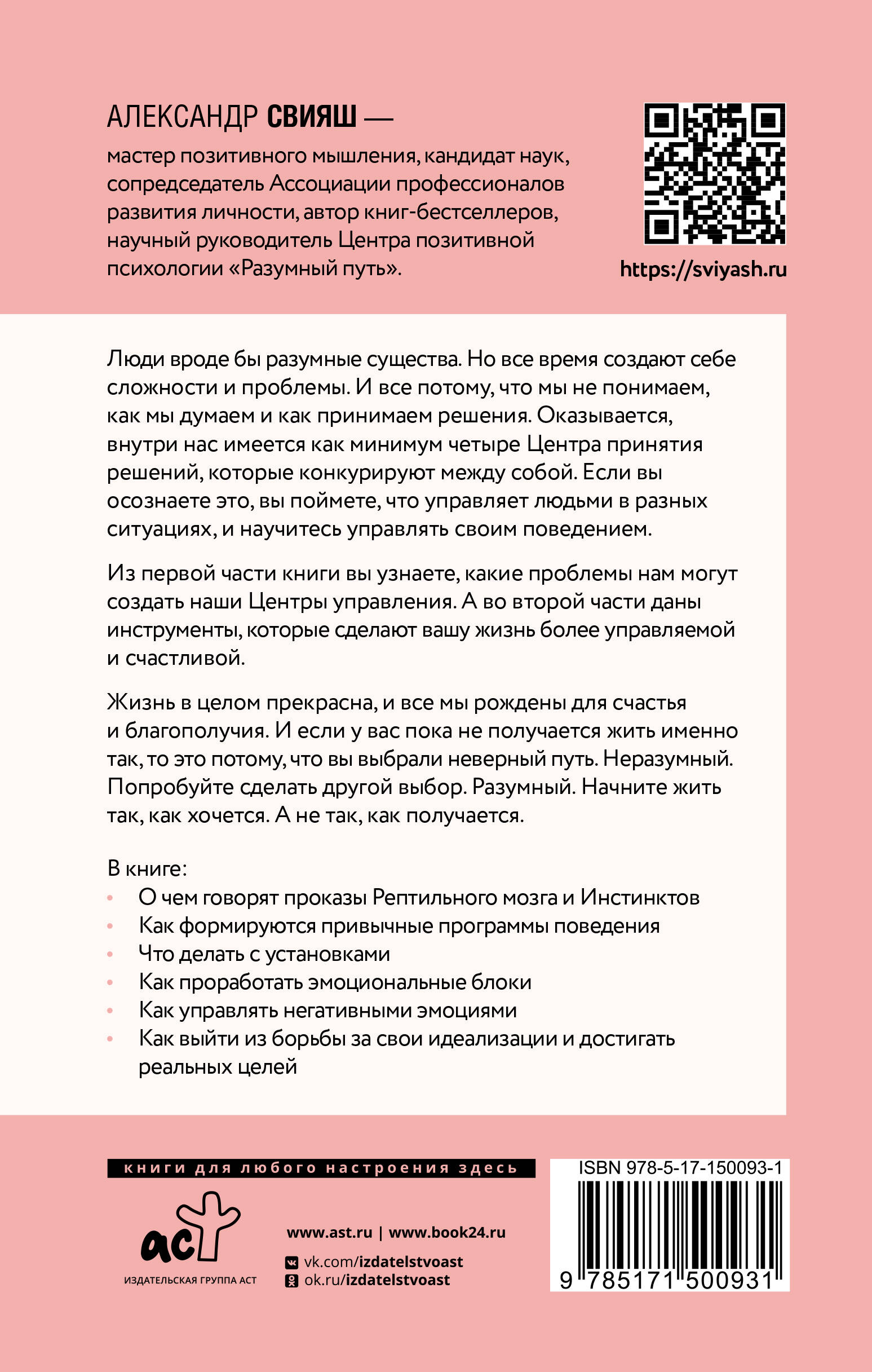 «Как разумные люди создают безумный мир» - книга, в которой в максимально доступной форме изложены основные идеи методики «Разумный путь», разрабатываемой автором вот уже 20 лет. Из книги вы узнаете: - почему нас раздирают два мозга и что с этим делать; - как мы бездумно исполняем заложенные в нас программы; - как взять собственную жизнь под контроль; - как приспособить разум и инстинкты для достижения своих целей; - как облегчить себе жизнь.| Издательство | АСТ |