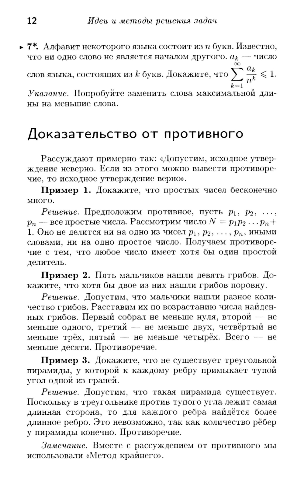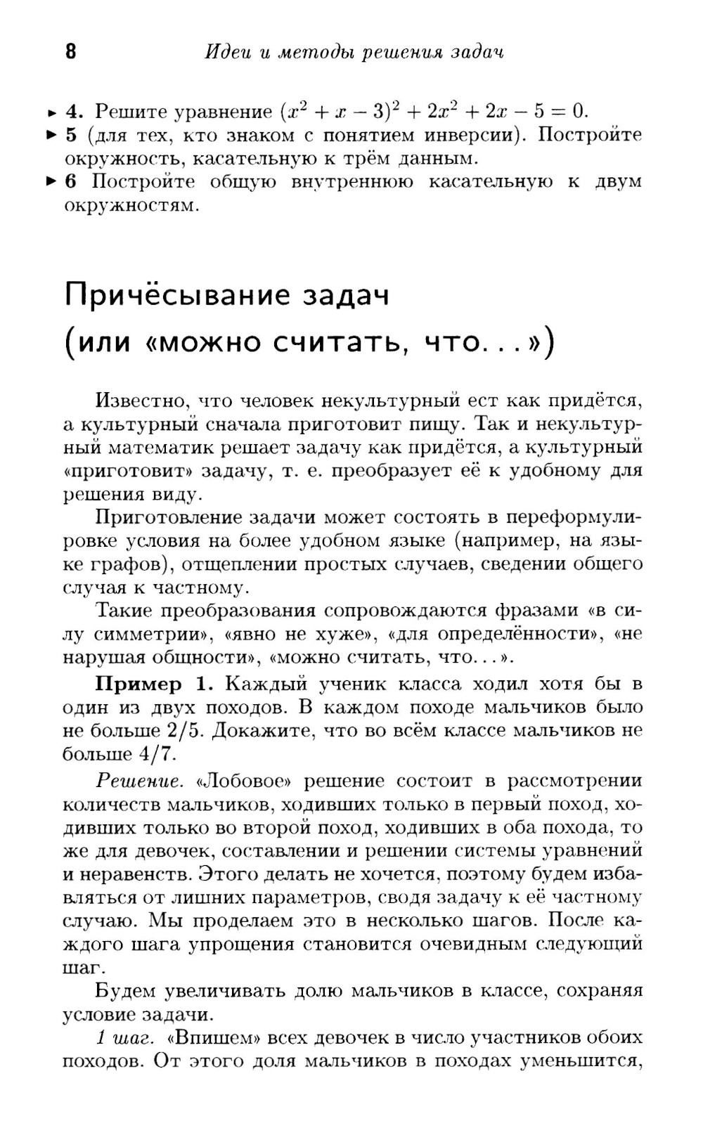 В книге описан ряд классических идей решения олимпиадных задач, которые для большинства школьников являются нестандартными. Каждая идея снабжена комментарием, примерами решения задач и задачами для самостоятельного решения. Приведены подборки задач олимпиадного и исследовательского типов (всего 200 задач), которые сгруппированы по классам. Сборник адресован старшеклассникам, учителям, руководителям кружков и всем любителям математики.| Издательство | МЦНМО |