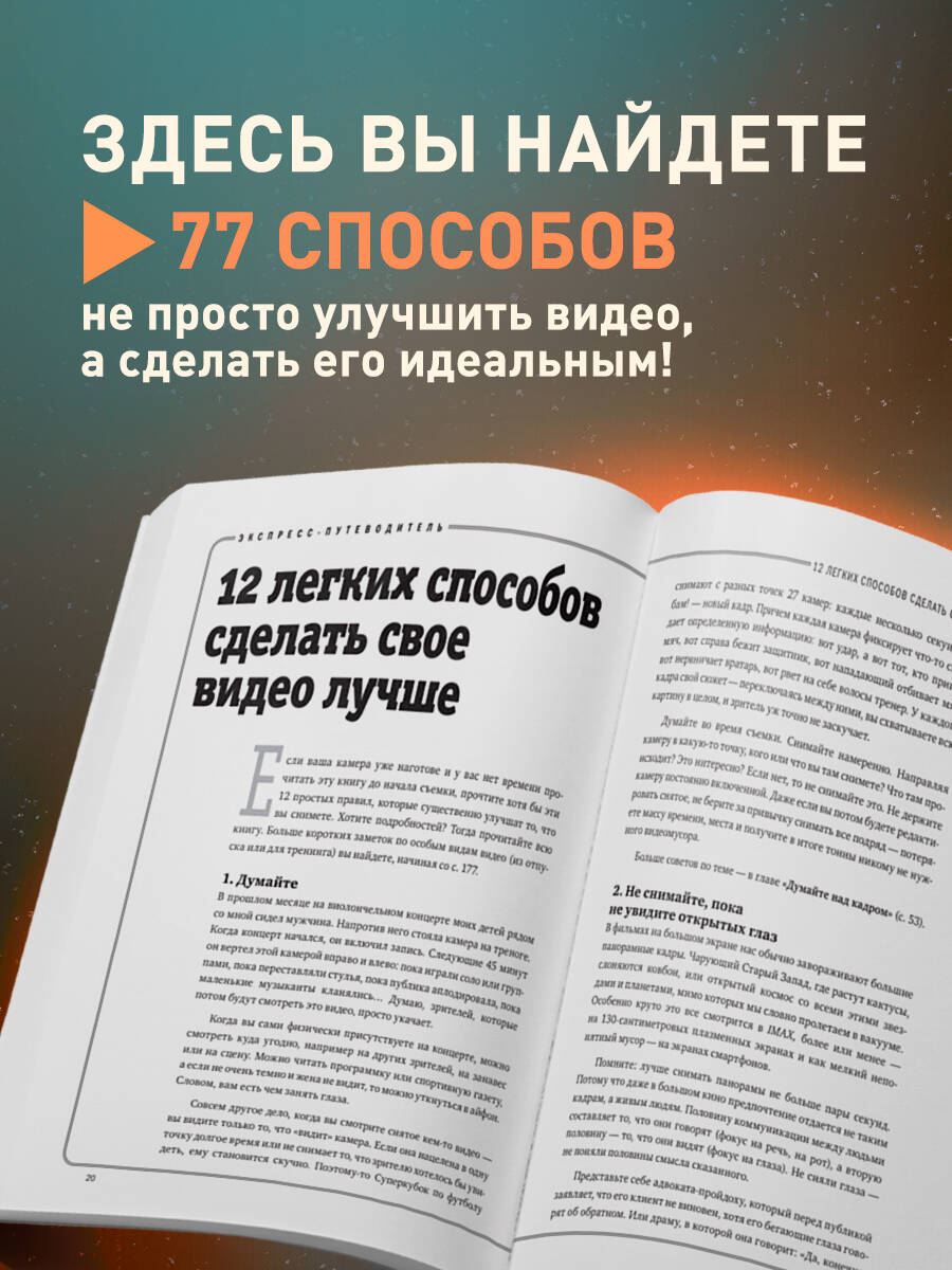 Книга-бестселлер от известного продюсера и сценариста Стива Стокмана в новом оформлении! Это 77 способов улучшить ваше видео. Автор книги уверен, что видео - мощный инструмент коммуникации, который может изменить ход истории, вдохновить и помочь общению. Снимаете ли вы день рождения своего ребенка, делаете ли промо-ролик какого-нибудь продукта или создаете сенсационное видео для YouTube, книга поможет вам не просто улучшить видео, а сделать его идеальным! Стив Стокман - сценарист и режиссер короткометражных фильмов, рекламных роликов, музыкальных клипов и ТВ-шоу. Продюсер, сценарист и режиссер фильма «Две недели» с Салли Филд и Беном Чаплином в главных ролях.