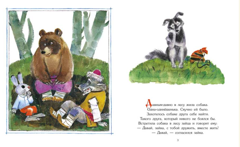 Искала себе собака сильного друга. Но зайка боится волка, волк боится медведя, а медведь боится человека. Тогда стали дружить человек и собака, и вместе они теперь никого не боятся! Короткая мордовская сказка в иллюстрациях Михаила Карпенко позабавит и удивит самых маленьких читателей.