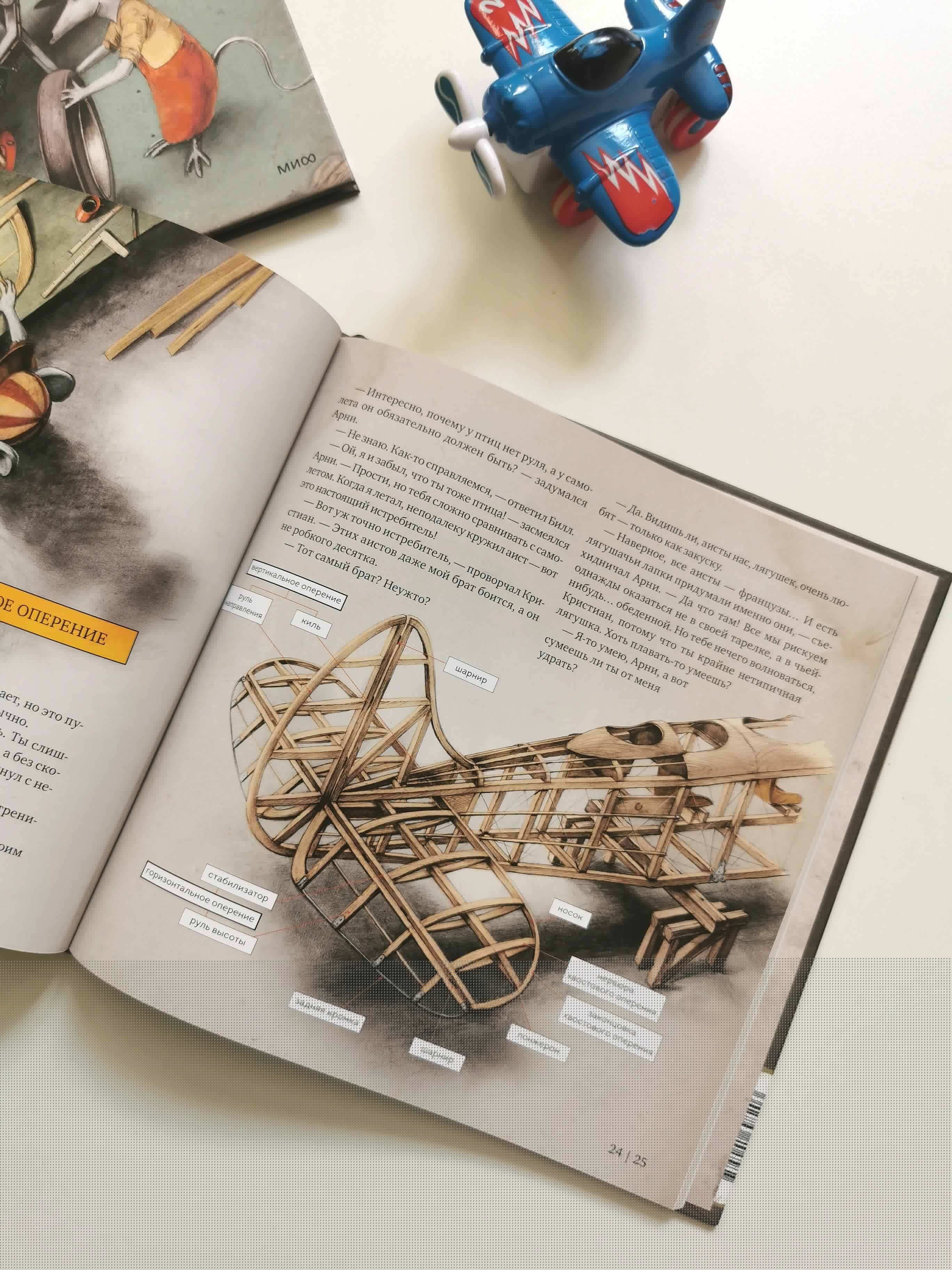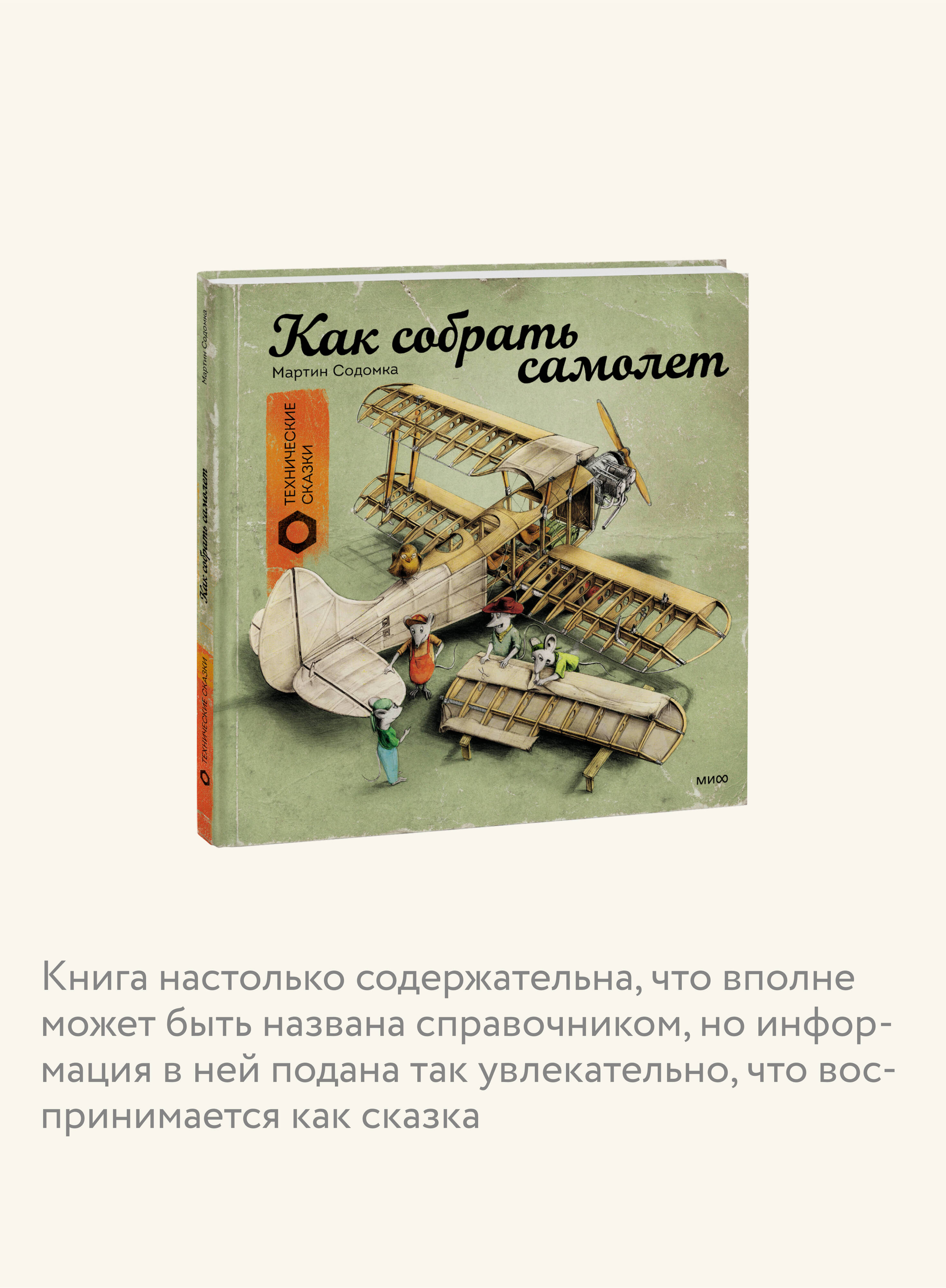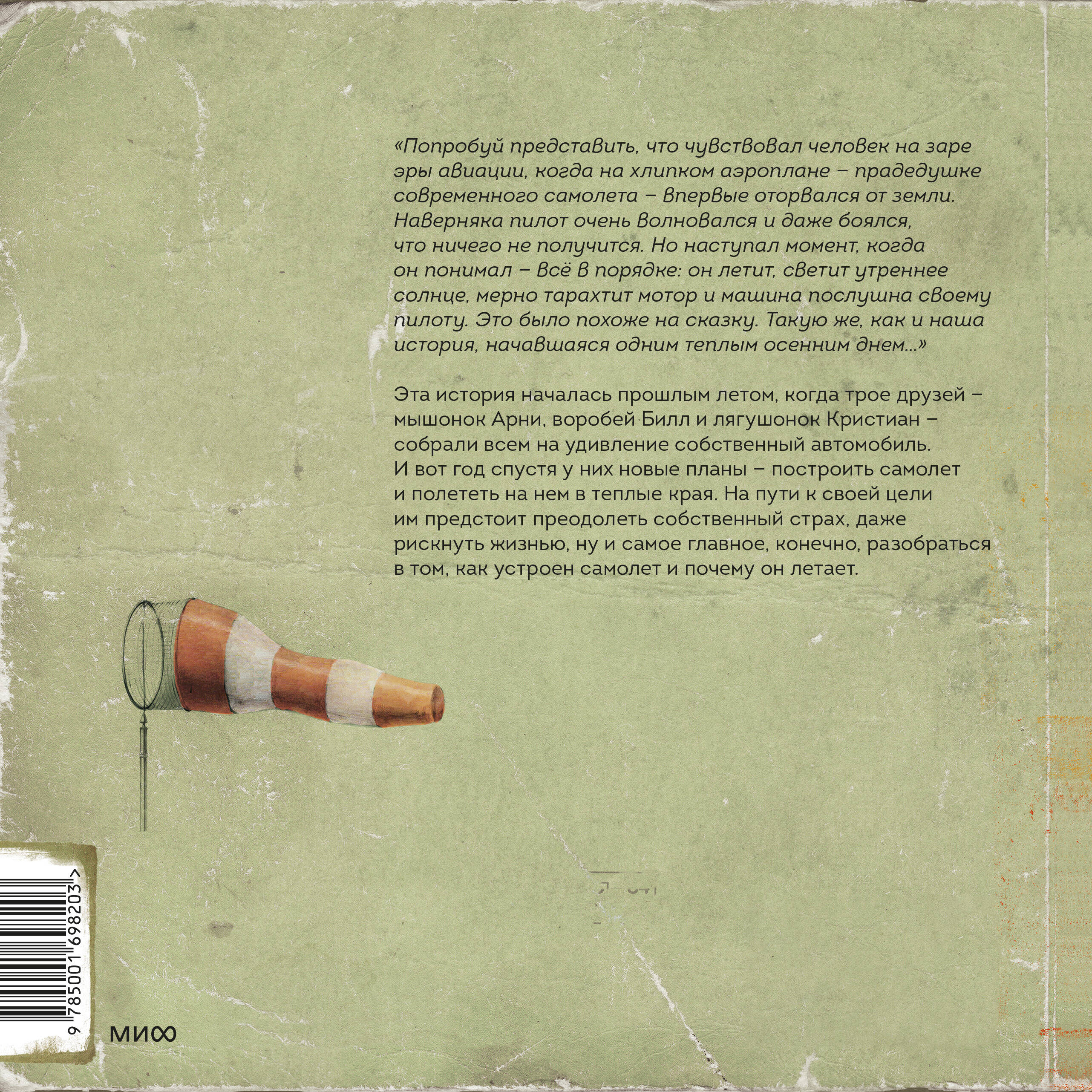 Эта история началась прошлым летом, когда трое друзей - мышонок Арни, воробей Билл и лягушонок Кристиан - собрали всем на удивление собственный автомобиль. И вот, год спустя, у них новые планы - построить самолет и полететь на нем в теплые края. На пути к своей цели друзьям предстоит преодолеть собственный страх, даже рискнуть жизнью, ну и самое главное - разобраться в том, как устроен самолет. Вместе с героями сказки вы узнаете, что такое фюзеляж, лонжероны и шпангоуты, для чего самолету нужны крылья и хвост, выясните, как управлять самолетом и какие приборы помогают пилоту в полете. О серии "Технические сказки" - серия познавательных книг, которые отвечают на любимый детский вопрос: "Как и из чего это сделано?" Это одновременно и познавательные книги об устройстве построек и транспортных средств, и забавные художественные истории о приключениях трех друзей - мышонка Арни, воробья Билла и лягушонка Кристиана. Сам автор назвал такой жанр - техническая сказка. Что такое карбюратор, почему у каких-то самолетов одно крыло, а у каких-то два, какие бывают виды фундамента, как устроена панель управления мотоцикла - обо всем этом ребенок узнает во время чтения. "Технические сказки" настолько содержательны, что вполне могут быть названы справочниками, но поданы они так увлекательно, что воспринимаются как сказки. В каждой книге подробно описывается устройство транспорта, процесс сборки, технические тонкости. Все иллюстрации детально прорисованы, тексты простые и легкие для восприятия. Книги разовьют любознательность, сформируют интерес к техническим наукам и помогут весело и полезно провести время. Для кого эта книга: Для детей 5-10 лет, которые любят машины и механизмы.