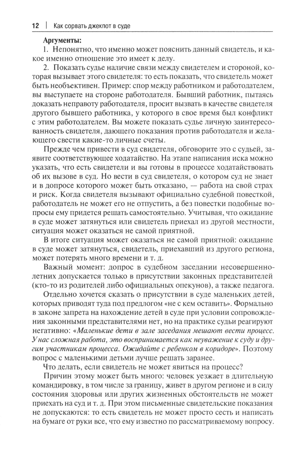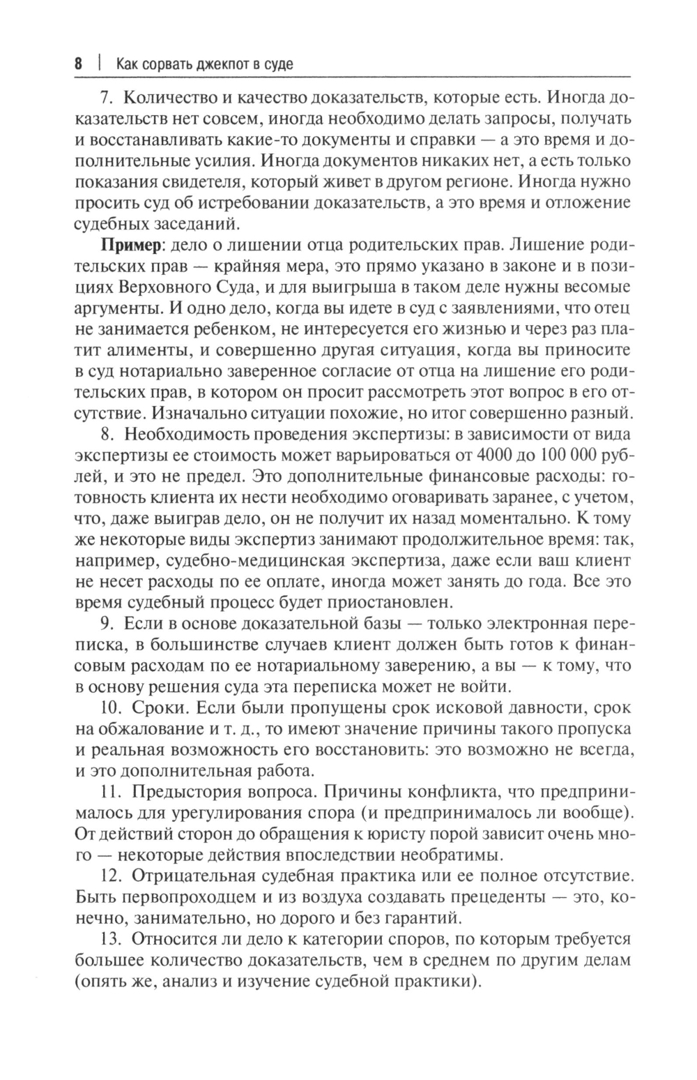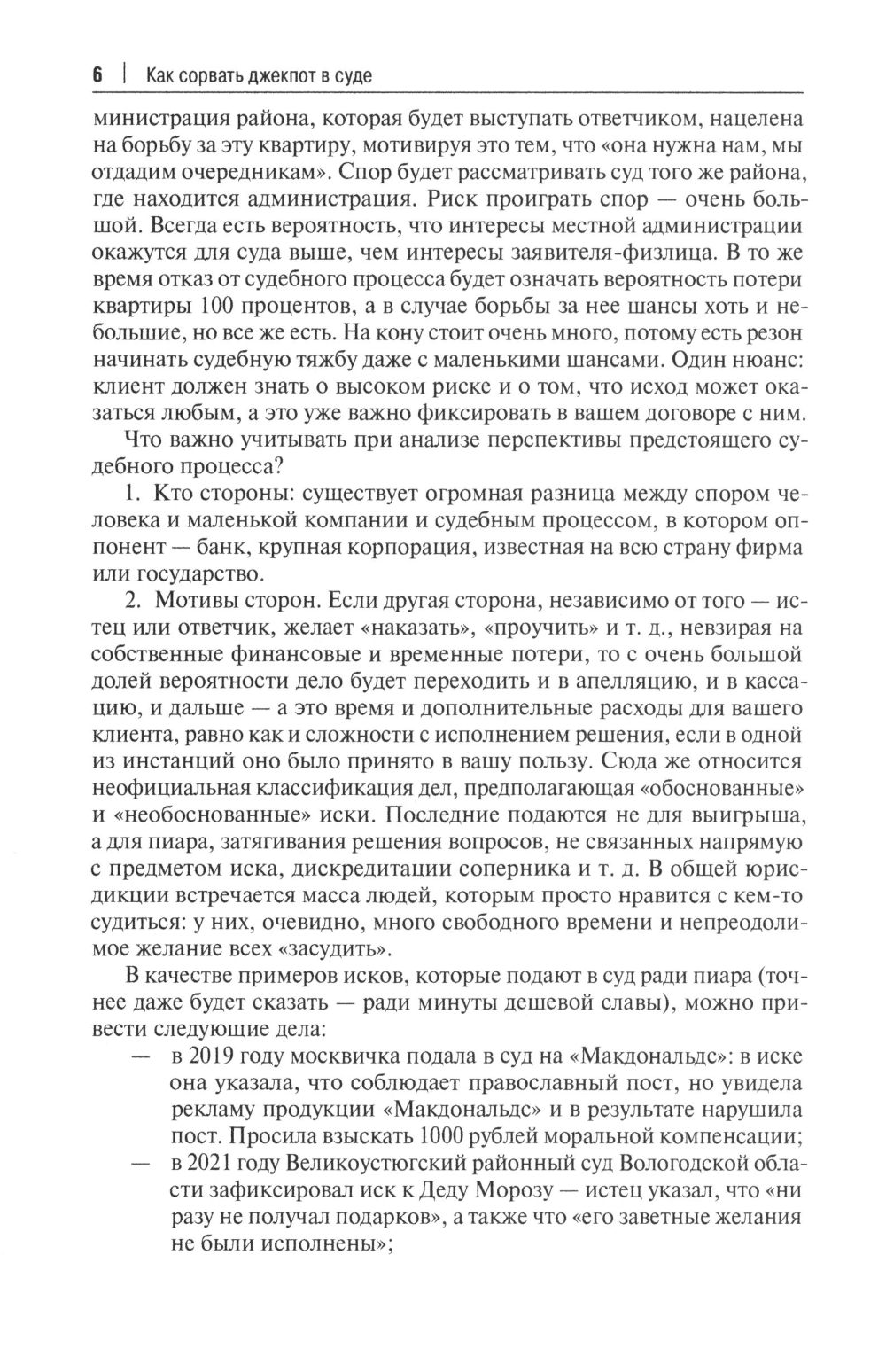 Как сорвать джекпот в суде? В книге на примере реальных кейсов судебный процесс рассматривается как применение определенных поведенческих стратегий сторон, так как стороны любого процесса - это люди, поведение которых порой весьма предсказуемо. Лжесвидетельство, фальсификация доказательств, провокации, угрозы, стремление сбить оппонента с толку и потянуть время, желание во что бы то ни стало доказать свою правоту - все это может быть и в семейном споре во время развода, и в корпоративном конфликте в организации, и на уровне компаний с международным именем. Суммы и интересы разные, а суть действий одна. Законодательство приведено по состоянию на июль 2024 г.