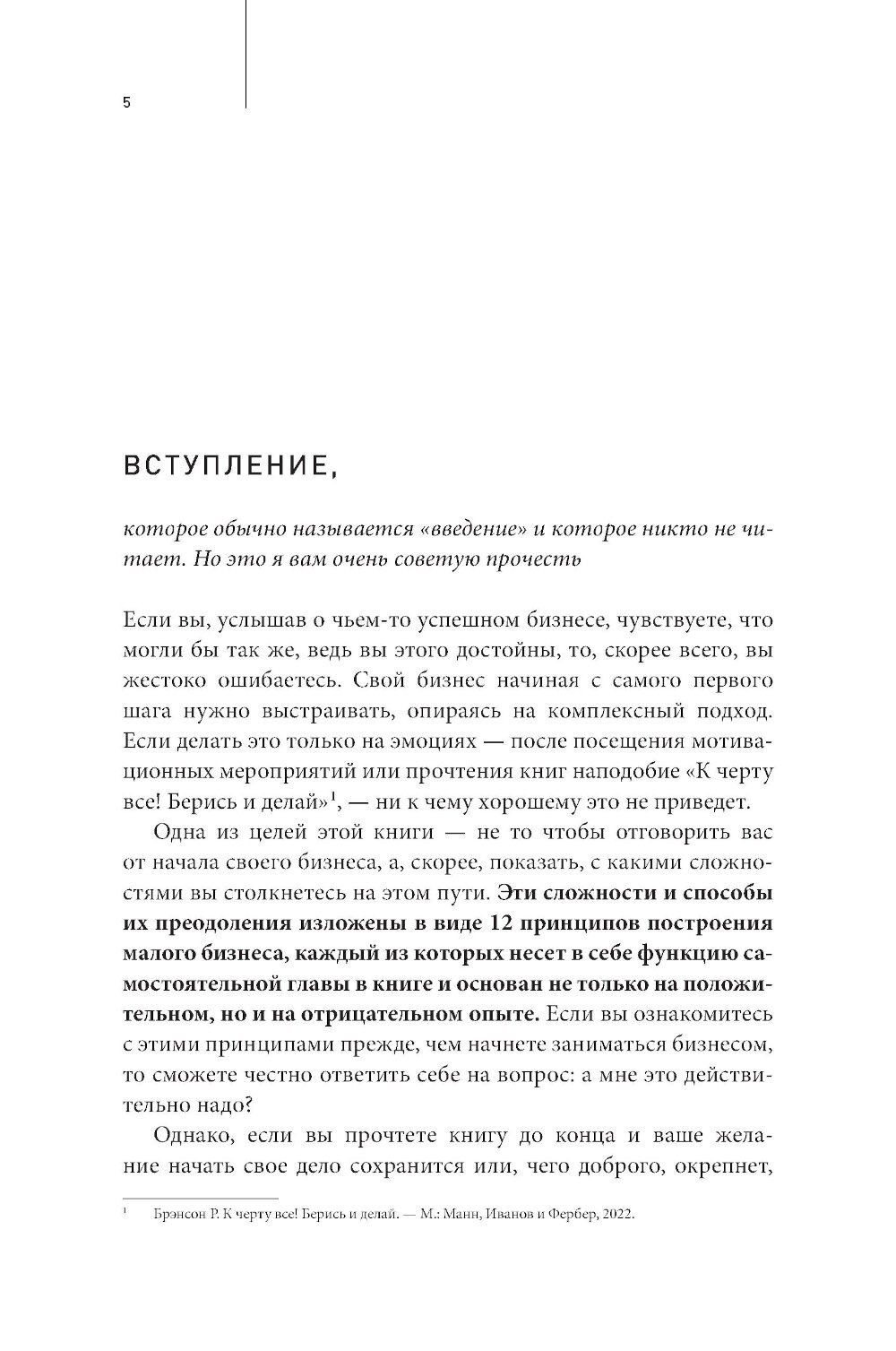 Вы мечтаете о собственном бизнесе, свободе и больших доходах? Думаете, что главное - хорошая идея и немного мотивации? Реальность бизнеса намного жестче, чем кажется. Большинство новичков совершают одни и те же ошибки: выбирают нишу «по любви», лезут в ненужные партнерства, берут кредиты или ищут инвесторов, не понимая, как будут зарабатывать. А потом удивляются, почему бизнес разваливается. Дмитрий Милачев - настоящий предприниматель, а не инфобизнесмен. Он не продает волшебные таблетки для достижения успеха, а рассказывает о реальных принципах, на которых строится прибыльный малый бизнес. Без иллюзий, без розовых очков, без громких, пустых лозунгов. Эта книга не вдохновляет - она отрезвляет. Если после ее прочтения вы передумаете заниматься бизнесом, значит, она уже сэкономила ваши время, деньги и нервы. А если, наоборот, подтвердите свое желание, то получите работающие инструменты, которые помогут вам не повторять чужие ошибки.| Издательство | Альпина ПРО |