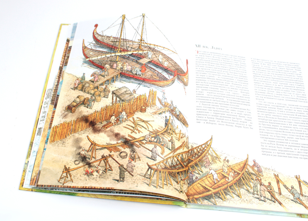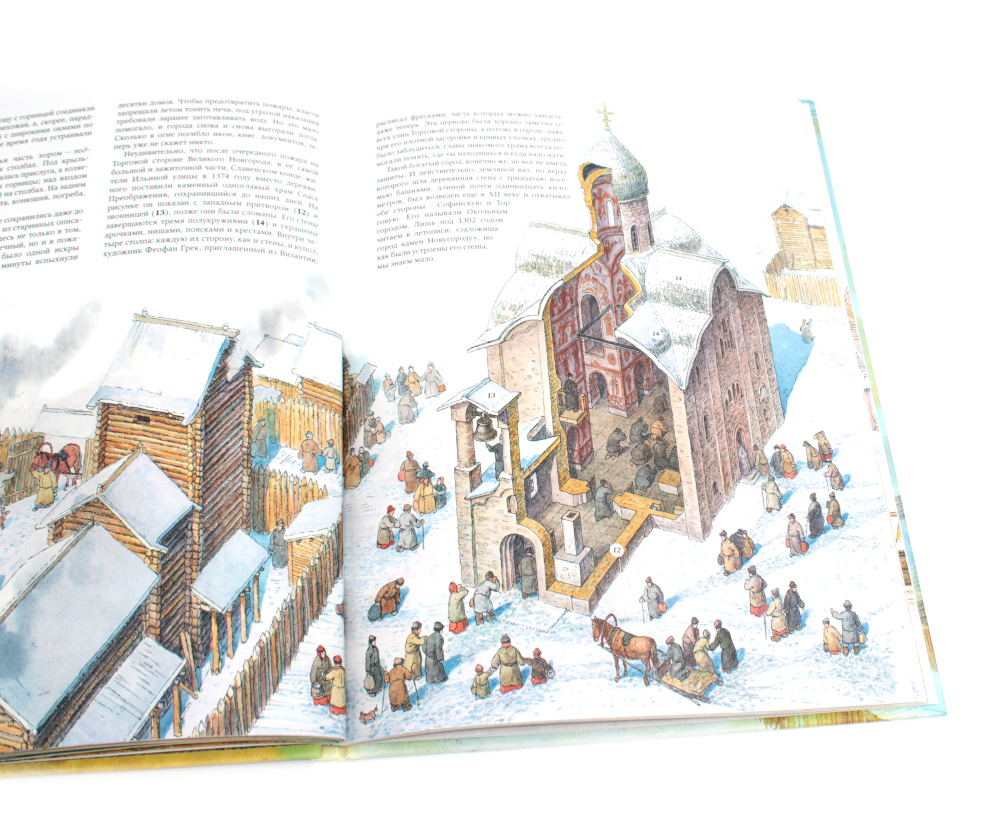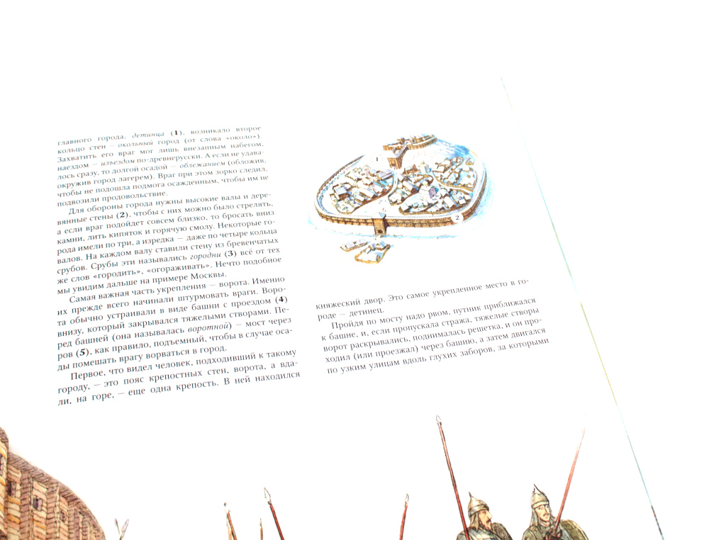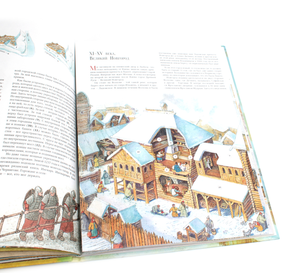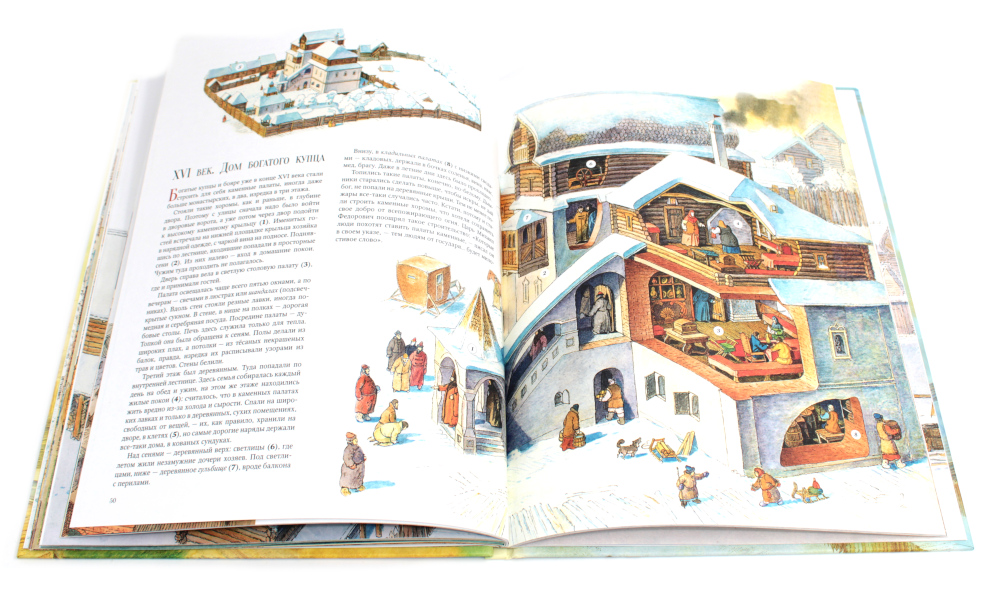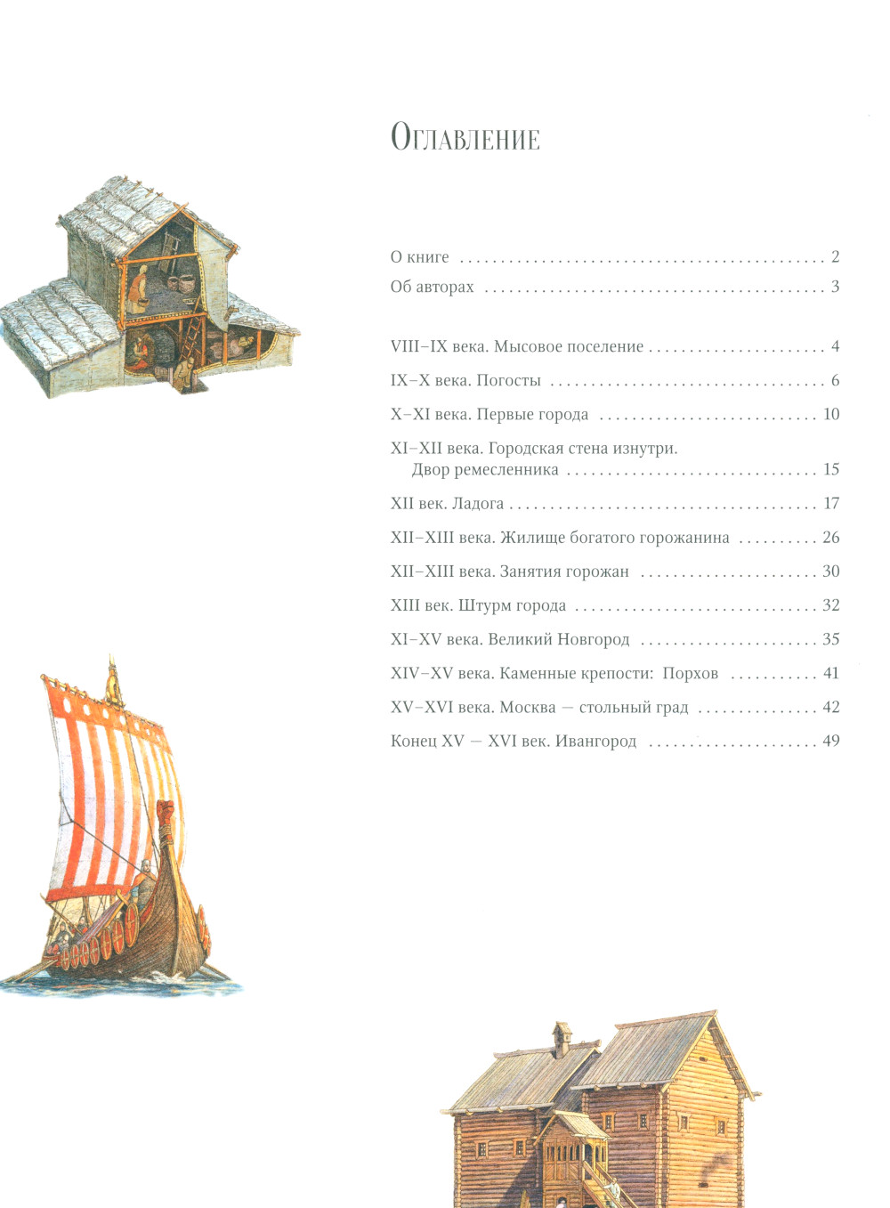 Как на Руси выбирали деревья для будущего дома? Что мерили «локтями»? Куда прибывали заморские гости? Что такое «двуручный кирпич»? Чем занимались в Навигацкой школе? Как освещалась светелка и кто в ней обитал? На эти и самые разные другие вопросы готова ответить наша книга. Здесь показаны в разрезе полуземлянка X века и жилище горожанина через триста лет, рубленые разборные дома, деревянные и каменные русские крепости снаружи и изнутри, устройство гостиного двора и старинной церкви, корабельная верфь, пушечный двор и разбойный приказ, а еще можно узнать о бродячих артистах и городских масленичных забавах, о том, чем торговали разносчики и лавочники. Все, о чем здесь рассказано, - настоящее. Потому что написал книгу настоящий ученый Михаил Исаевич Мильчик, историк архитектуры, знаток деревянного зодчества, который много лет посвятил изучению и охране памятников Русской Старины. В строгом соответствии с научными историческими изысканиями книгу проиллюстрировал изобретательный художник Никита Иванович Андреев.