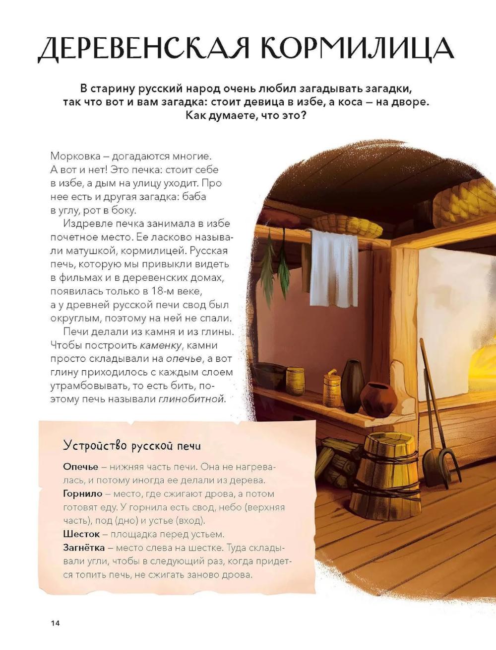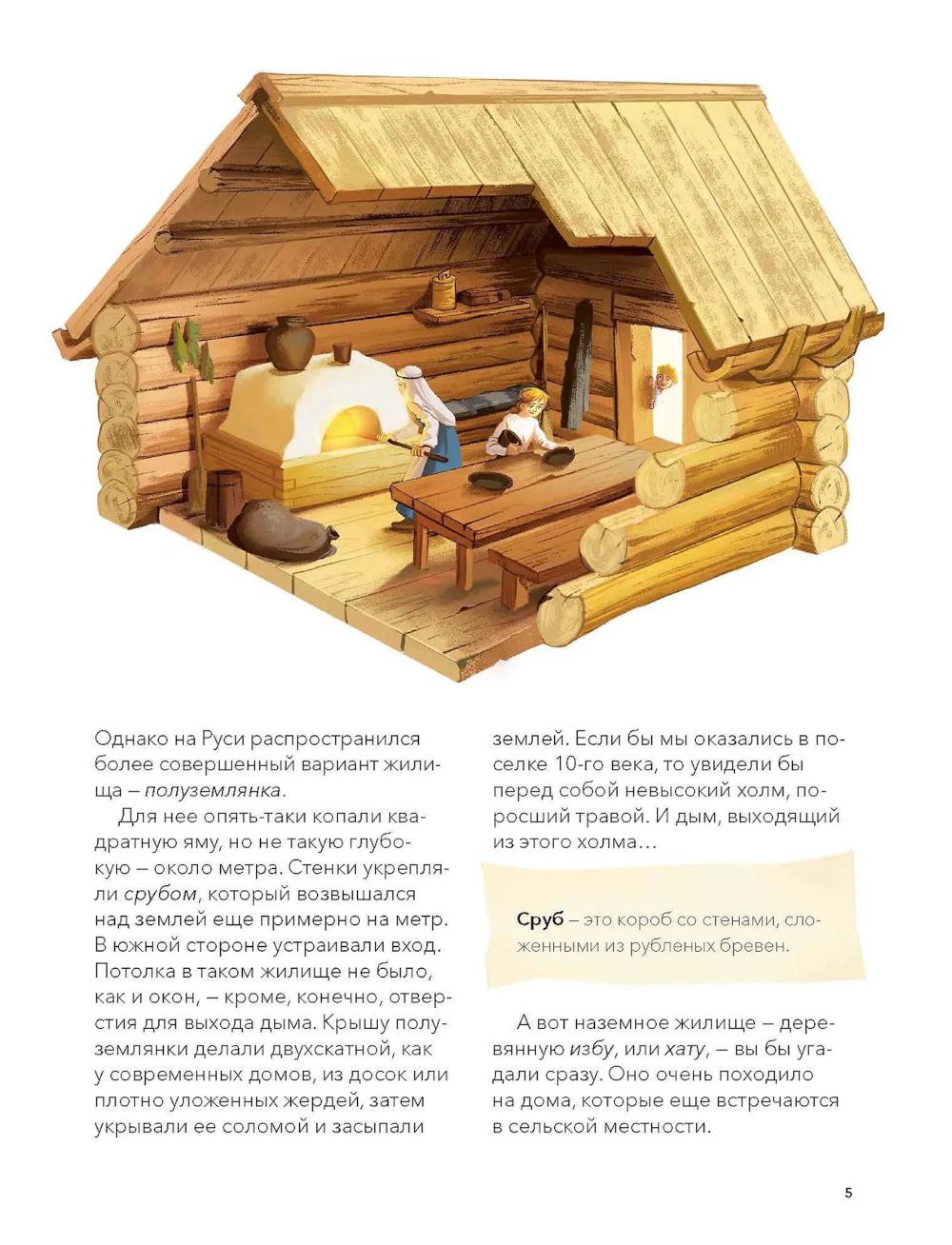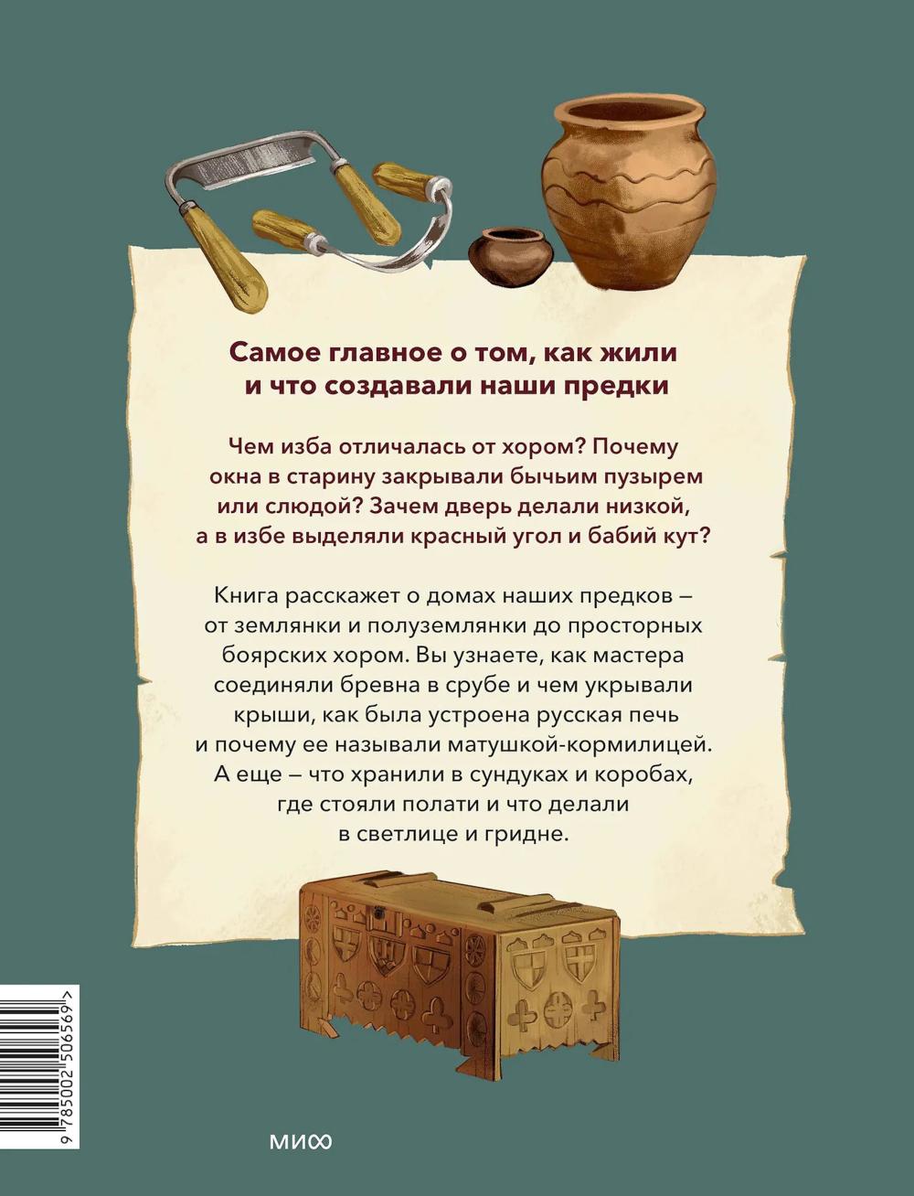 Книга из серии «Наша страна Россия. Как жили на Руси», в которой собраны небольшие красочные издания по 16 страниц, созданные специально для первого чтения и занятий с детьми. Простые тексты, написанные историками и этнографами, и яркие иллюстрации помогут ребенку увидеть, как жили наши предки, научат бережно относиться к истории и ценить традиции своей страны. Чем изба отличалась от хором? Почему окна в старину закрывали бычьим пузырем или слюдой? Зачем дверь делали низкой, а в избе выделяли красный угол и бабий кут? Книга расскажет о домах наших предков - от землянки и полуземлянки до просторных боярских хором. Вы узнаете, как мастера соединяли бревна в срубе и чем укрывали крыши, как была устроена русская печь и почему ее называли матушкой-кормилицей. А еще - что хранили в сундуках и коробах, где стояли полати и что делали в светлице и гридне. В издание вошли тексты из книги «Как жили на Руси».| Издательство | Манн, Иванов и Фербер |