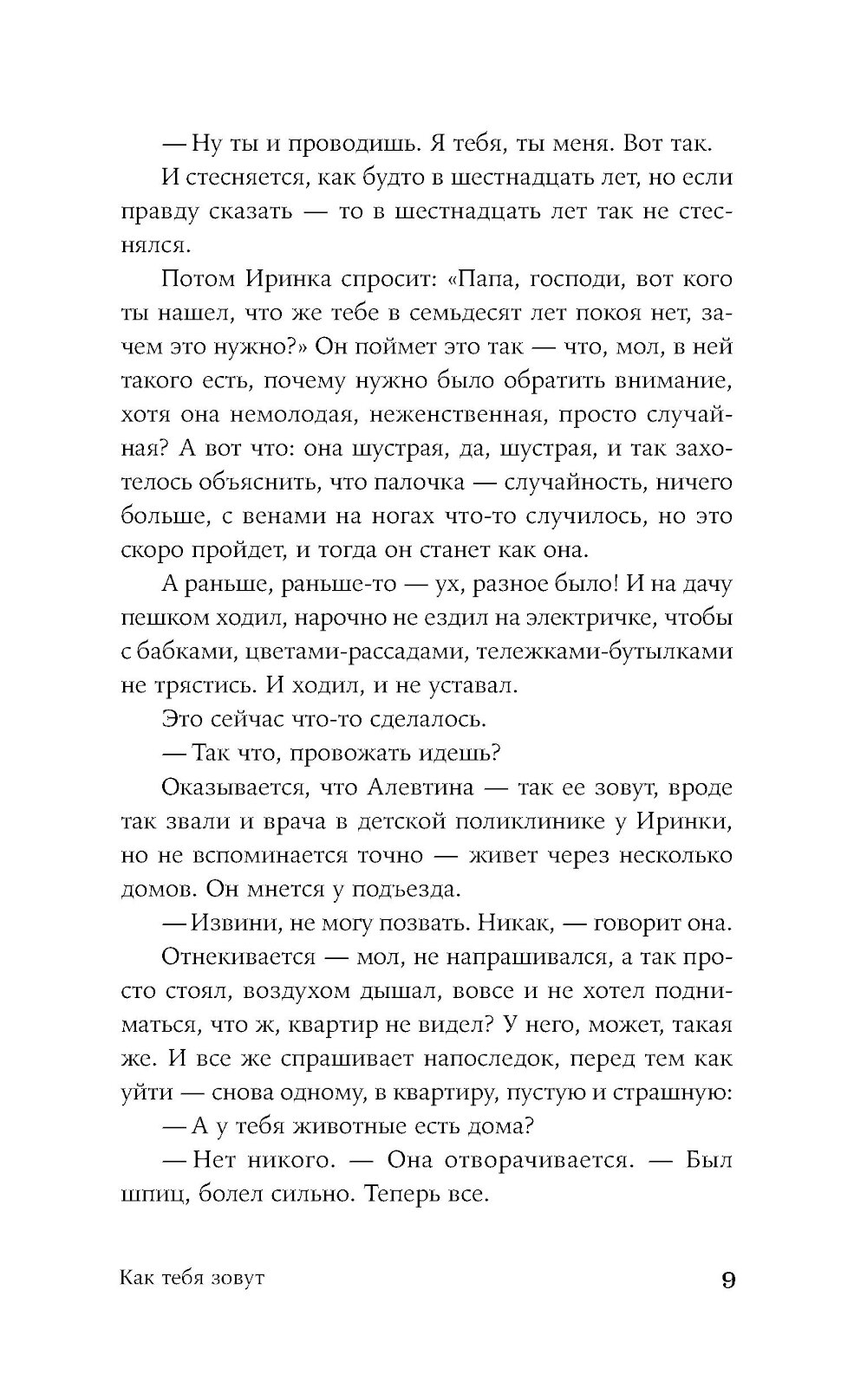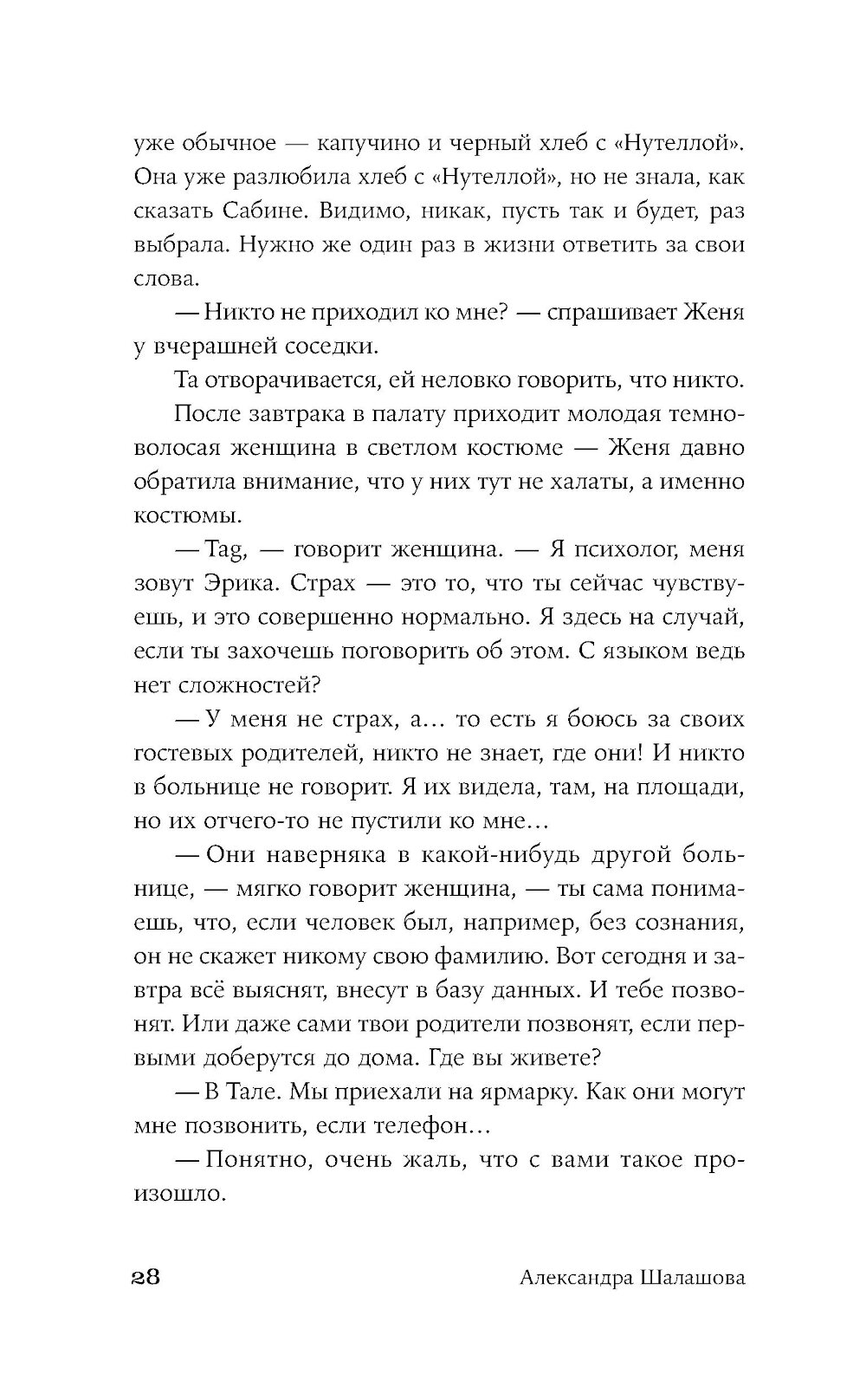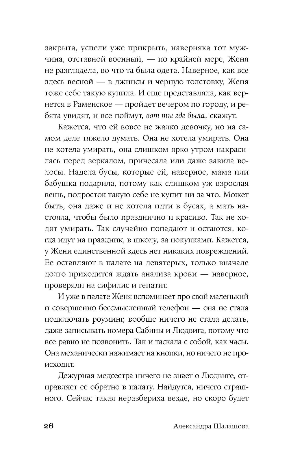 Он забывает слова, путает имена дочери и внучки. Может быть, это не так важно, а важно другое имя - имя девочки, которую он встретил в Германии в 1941 году, а потом безвозвратно утратил. Блуждая в лабиринтах памяти, он пытается снова найти ее - и себя. Он всматривается в старые фотографии, на которых его родной Великий Новгород, небо и деревья. Однажды он уходит из дома, продолжая фотографировать, потому что только это помогает как-то удержаться в ускользающей реальности. Его ищет внучка - у них большое путешествие, одно на двоих. Новый роман Александры Шалашовой - пронзительное размышление о любви к трем женщинам, о том, как в сумраке подступающей деменции остаться собой. Ведь ты - это ты, пока даже в полной темноте помнишь, как тебя зовут.