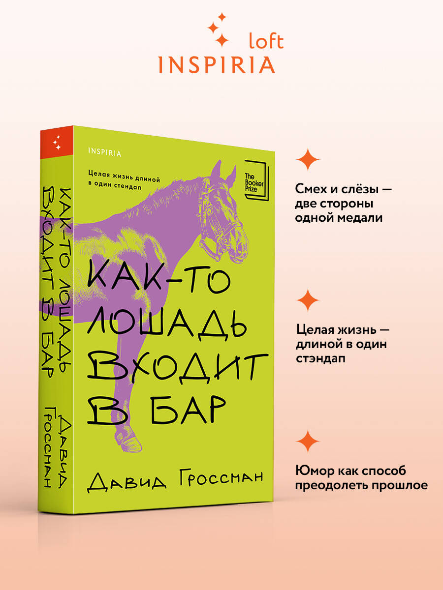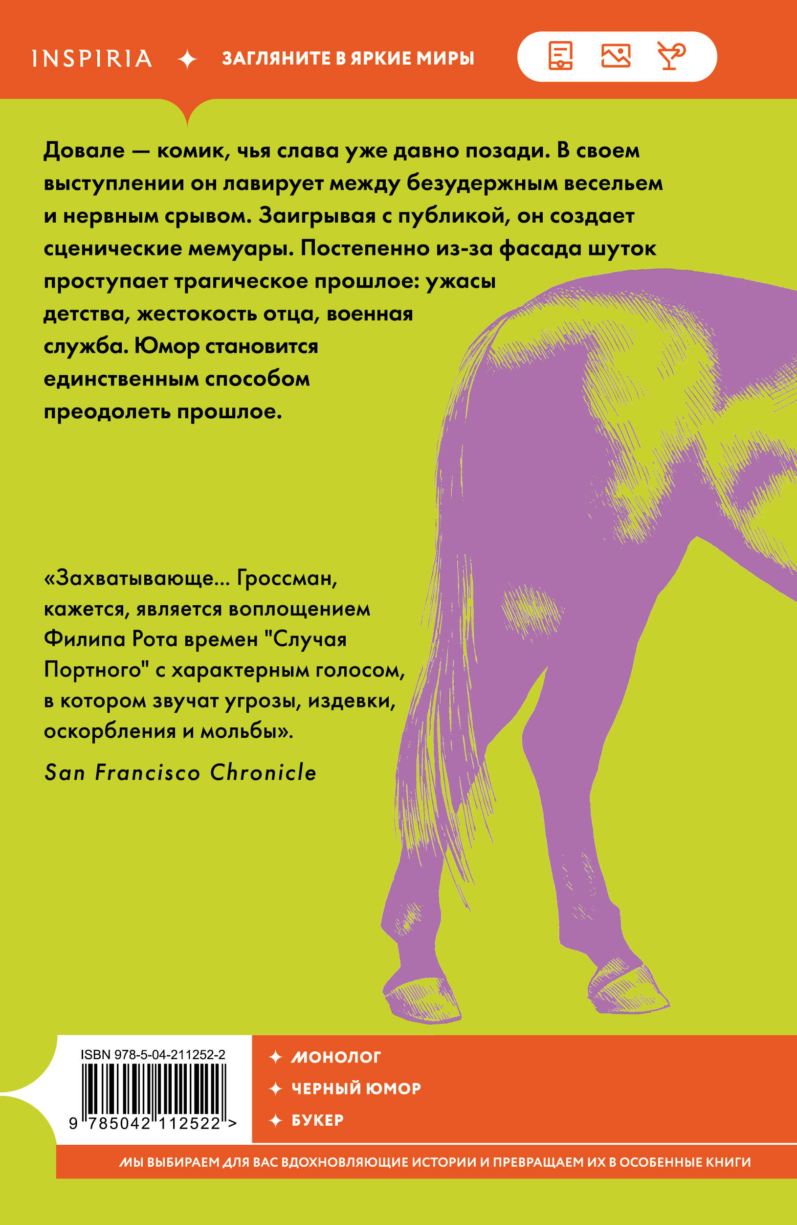«Лошадь заходит в бар» - это трогательное исследование того, как люди противостоят cложным жизненным перипетиям с помощью острого слова. За этот роман Давид Гроссман был удостоен Международной Букеровской премии. Это монолог, полный непомерного таланта. Роман-динамит, напоминающий первые стендапы, которые запоминаются, становятся притчей во языцех и показывают настоящий литературный мастер-класс.| Издательство | ООО "Издательство "Эксмо" |
