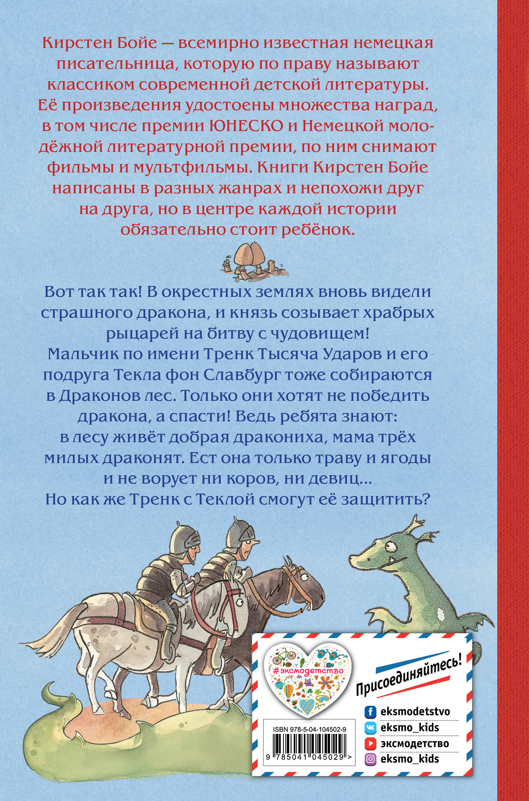 Может ли сын крепостного крестьянина стать пажом, а затем и рыцарем? В давние тёмные времена, когда на свете ещё существовали и крепостные, и драконы, люди были уверены, что нет. Но маленький мальчик по имени Тренк Тысяча Ударов сумел изменить свою судьбу! Теперь он, сын бедного крестьянина, живёт в замке и изучает всё, что положено знать благородному рыцарю. Но впереди его ждёт серьёзное испытание. В окрестных землях вновь видели страшного дракона! И, так уж получилось, что именно Тренку предстоит решить эту проблему… Автор этой книги Кирстен Бойе - всемирно известная немецкая писательница, классик современной детской литературы. Её книги удостоены множества наград (в том числе, премии ЮНЕСКО и Немецкой молодёжной литературной премии), по ним снимают фильмы и мультсериалы. Издание отличает удобный для чтения шрифт - и обаятельные чёрно-белые иллюстрации. Отличный вариант как для самостоятельного чтения, так и для чтения всей семьёй! Книга будет интересна мальчикам и девочкам 6-9 лет.| Издательство | ООО "Издательство "Эксмо" |